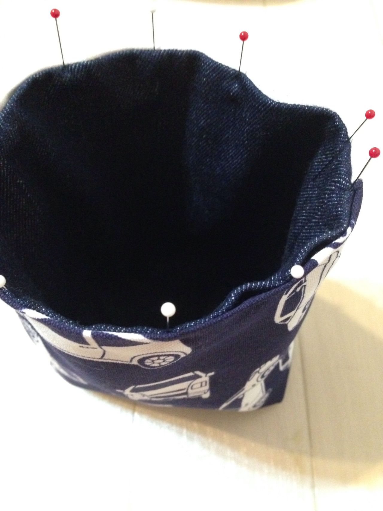 ⑦表地をひっくり返して、表地の中に裏地を入れます