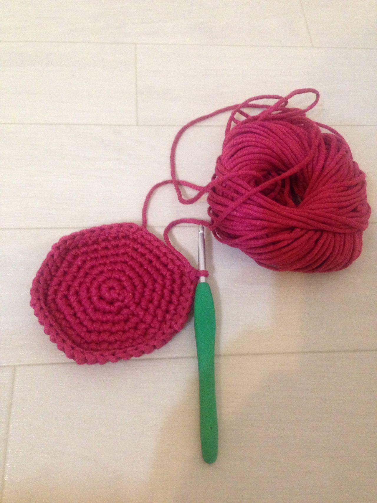 ①輪の作り目から1〜11段まで増やし目をしながら底を編んでいきます。