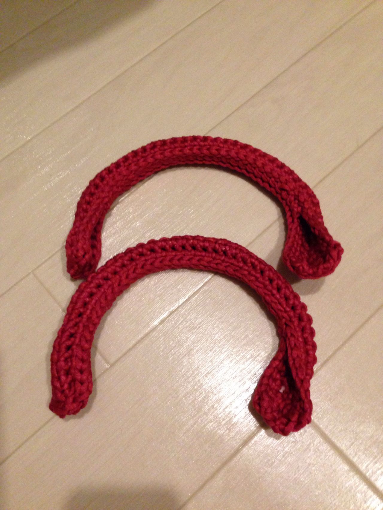 ④持ち手は、持つ部分を半分に折って巻きかがりをします。