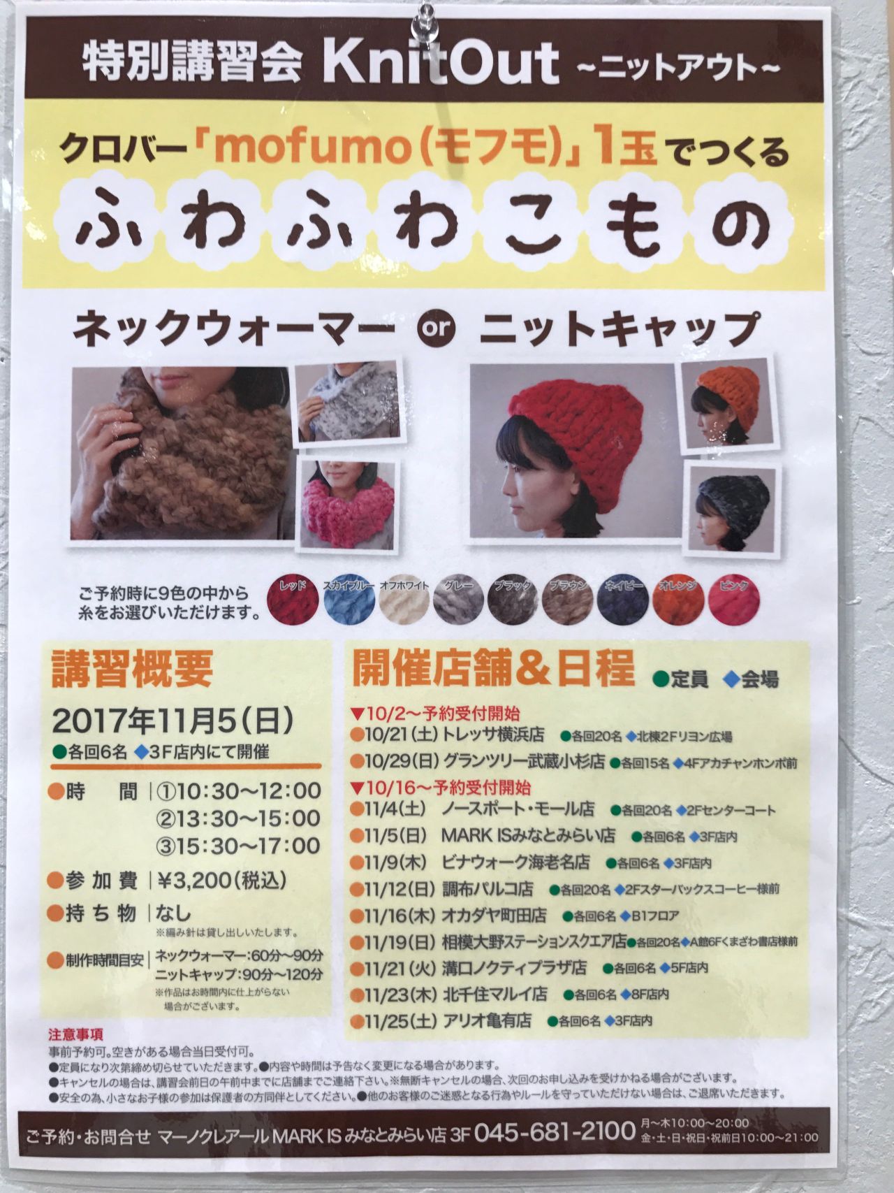 今日は、こんな寒い日に身につけたくなっちゃう、ふわふわこものを作る講習会のお知らせだよ☆