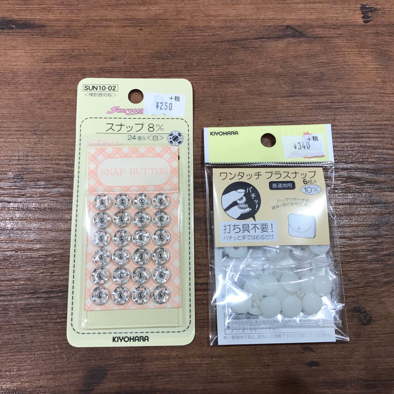今回は表にワッペンをつけたので縫い付けタイプを使用。手軽に付けられるワンタッチプラスナップもおすすめ!