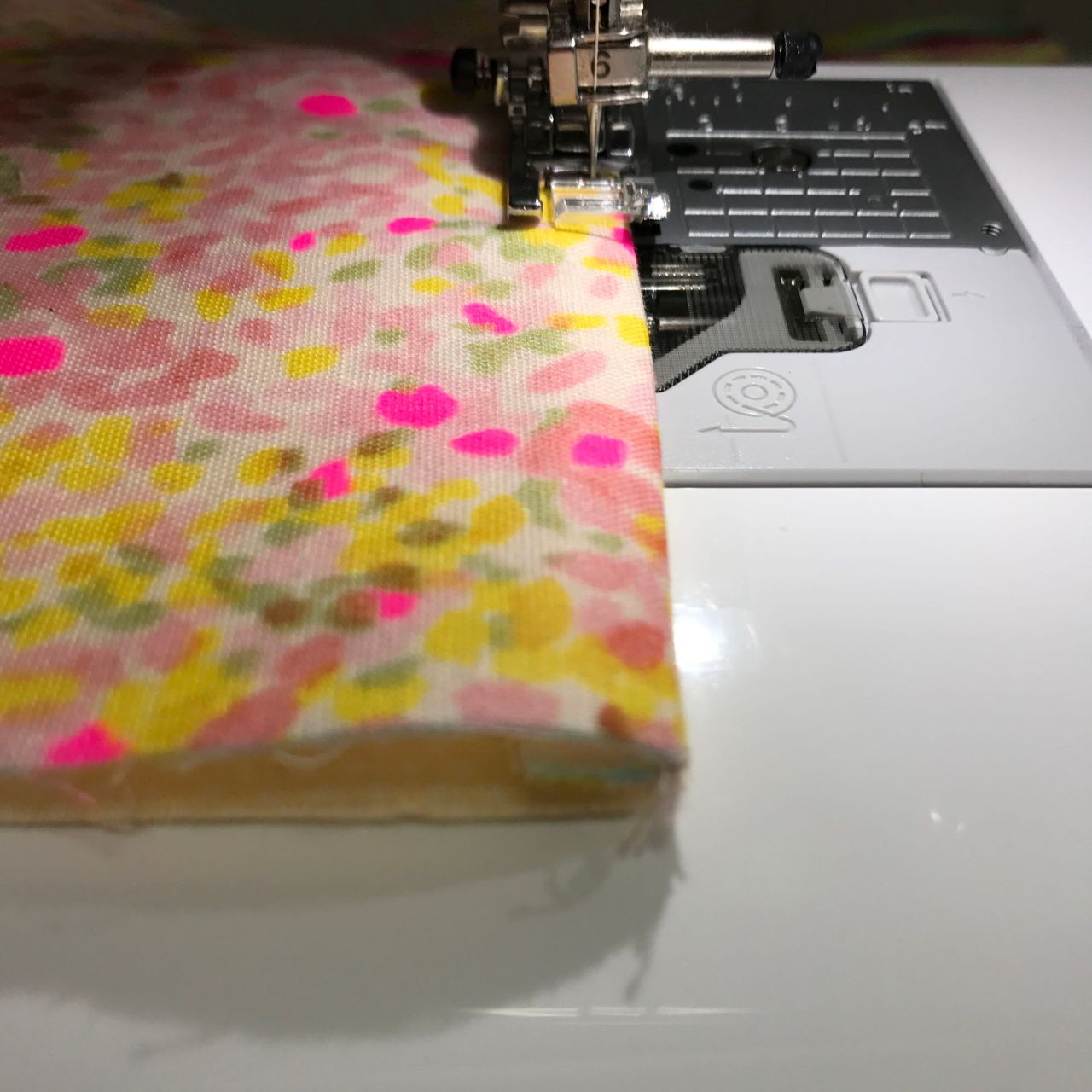 ④両端とフタ部分を、返し口(8cmくらい)残してミシンで縫います。