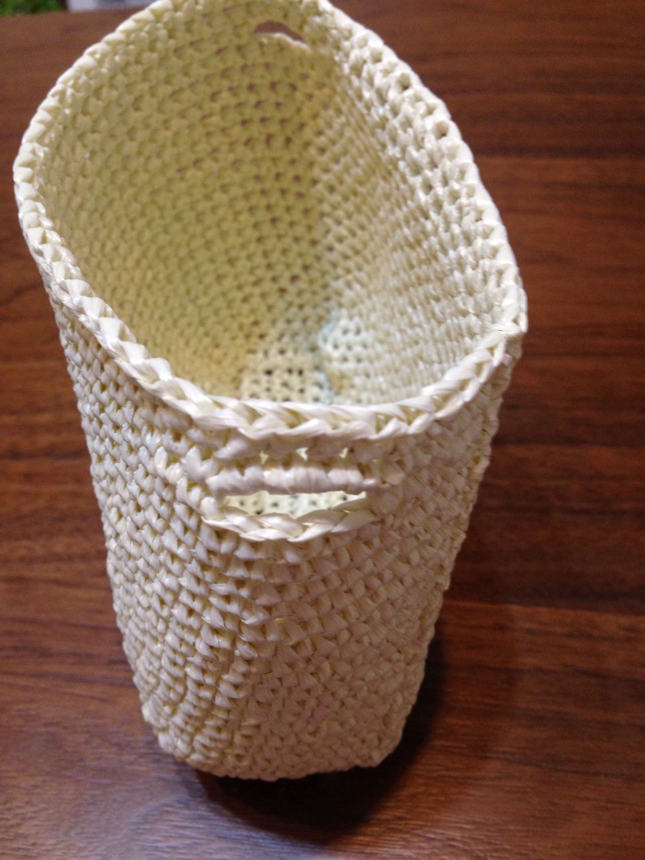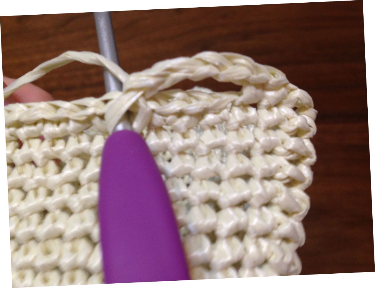 ②底の周囲を細編みでひろい側面を編んでいきます