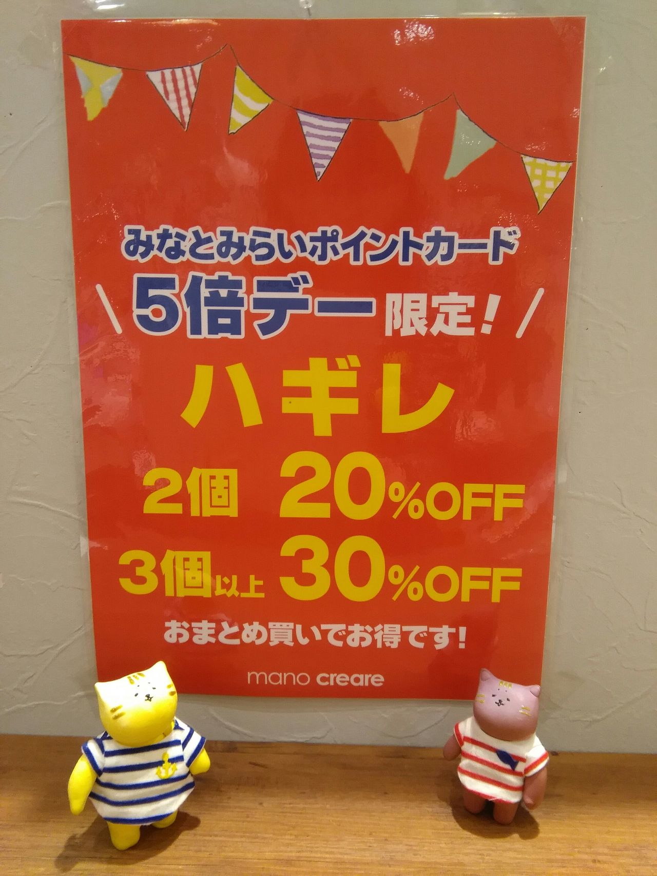 みなとみらいポイント5倍デー&ハギレセールのご案内だよ!