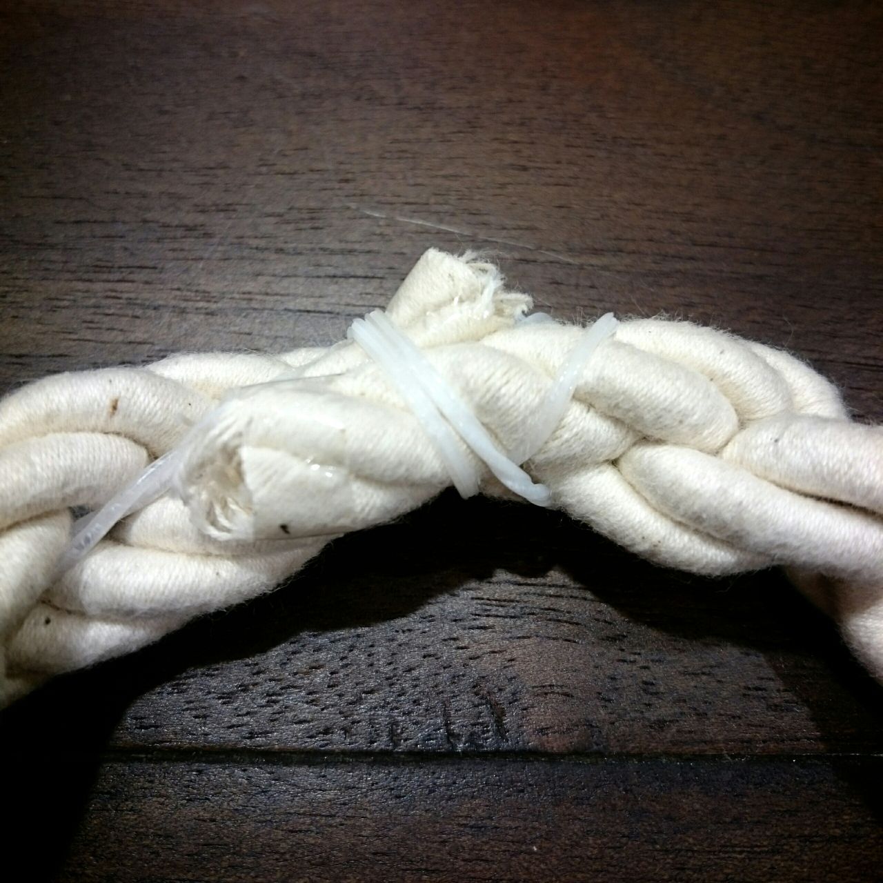 綿ロープ(11mmサイズ×1m)をぐるぐる通します。