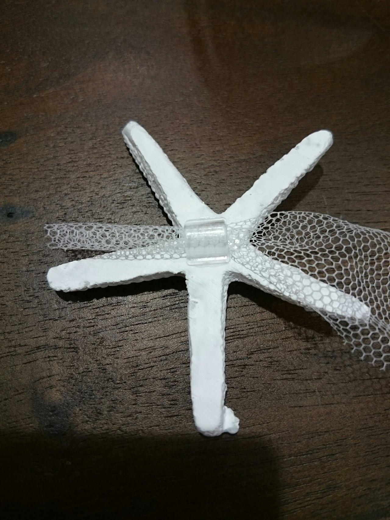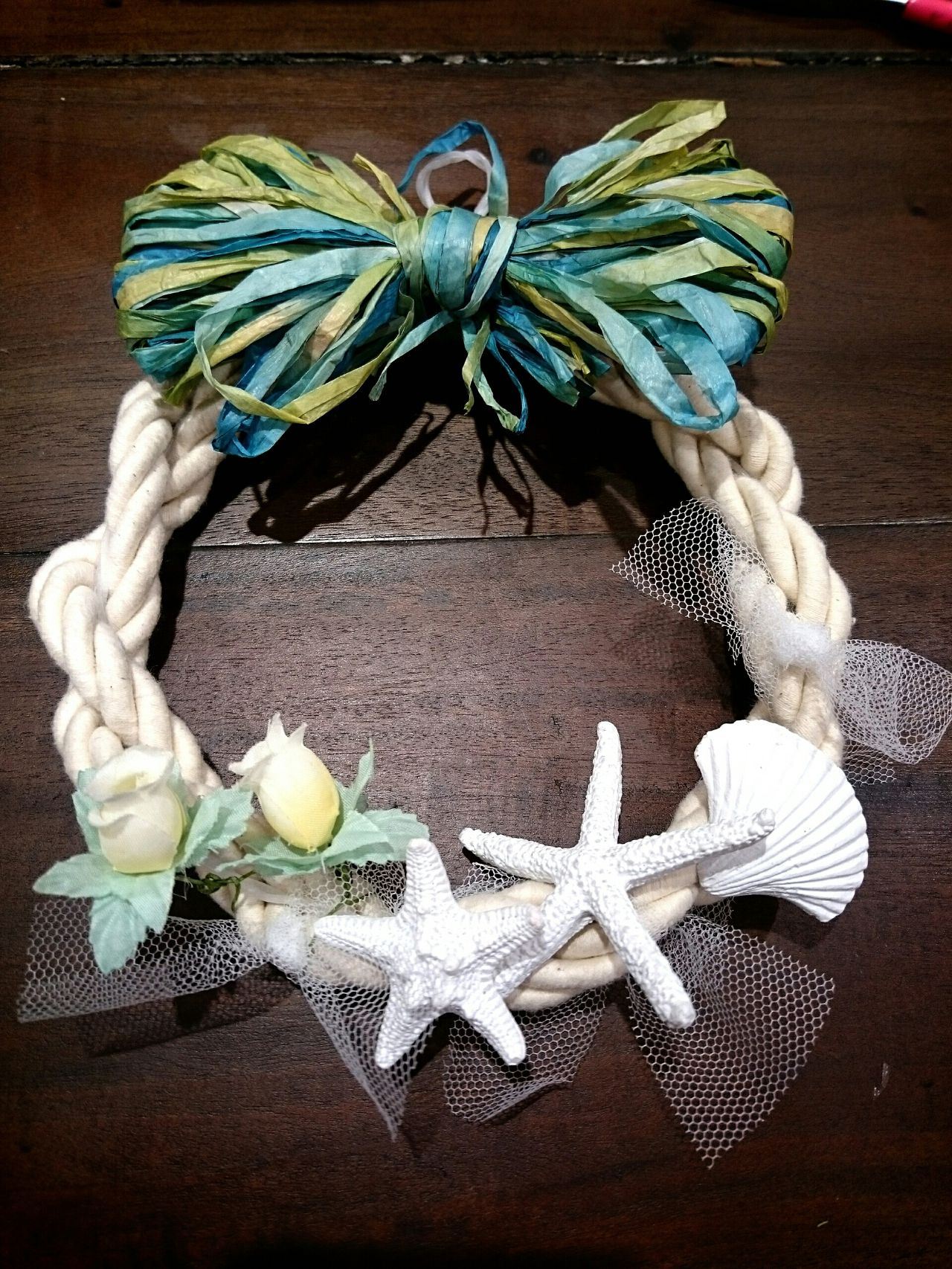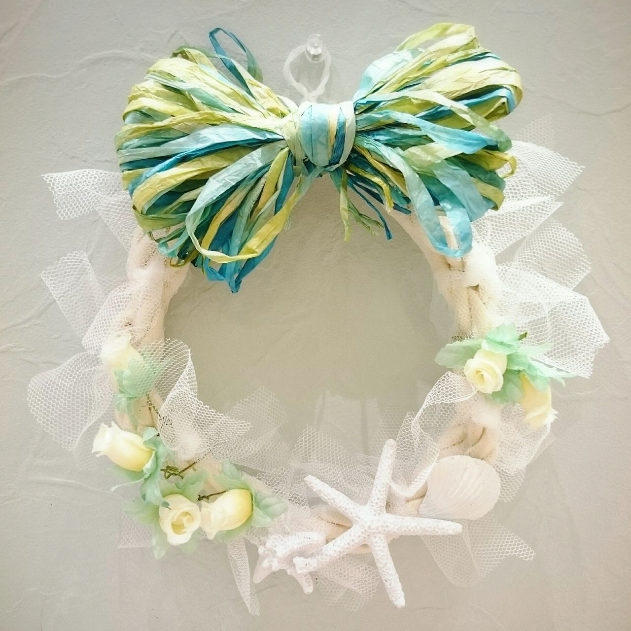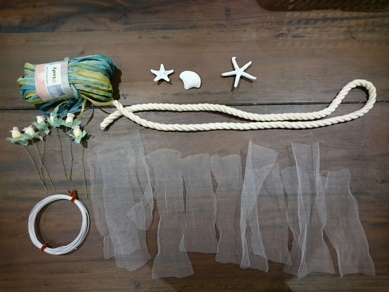 あとは、ヒトデ・貝パーツ、カットしたチュール生地を結んでいって、