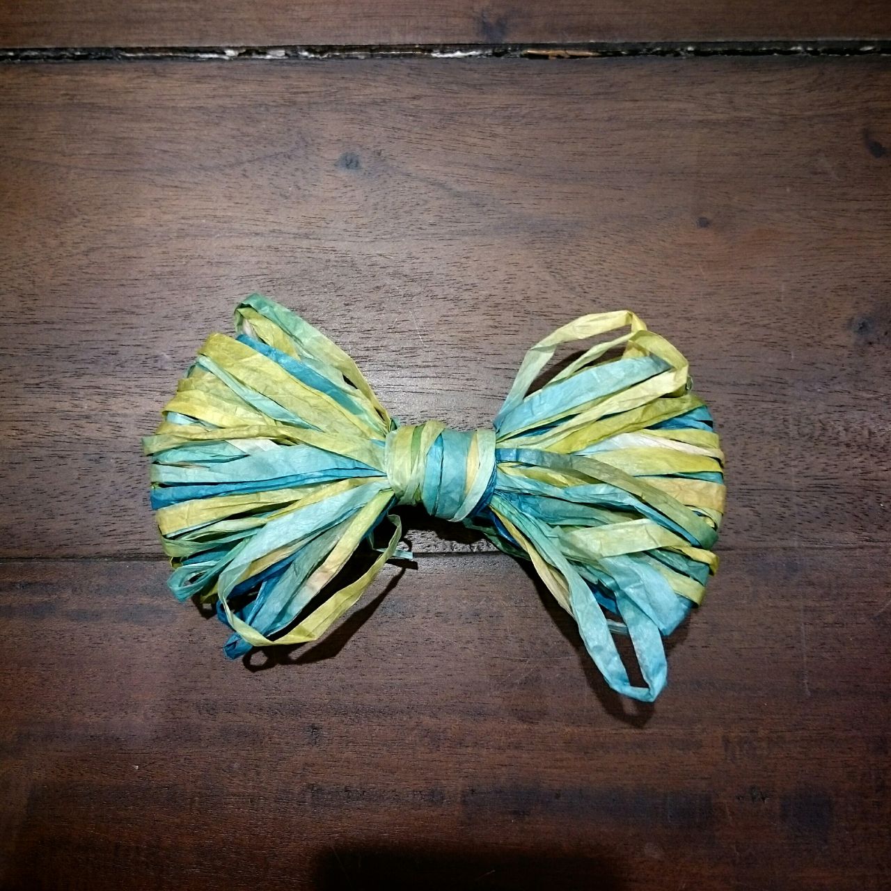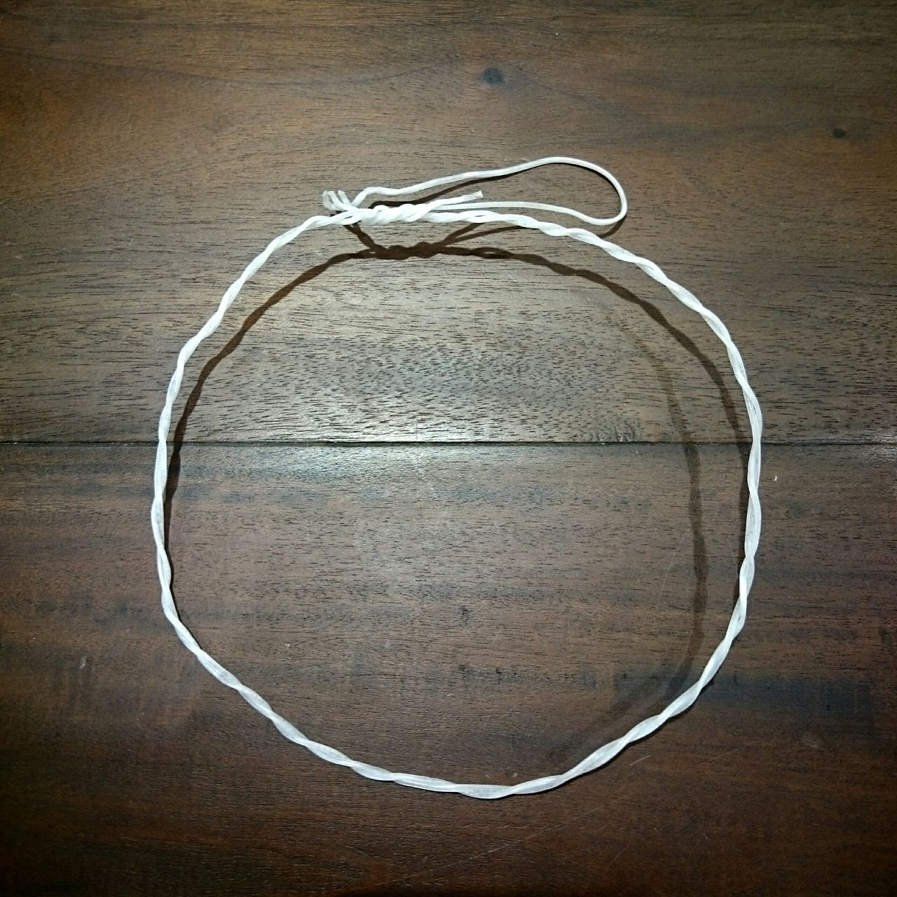ロープの土台にリボンを固定して、残ったテクノロートで輪っか(壁掛け用)も作っておきましょう。