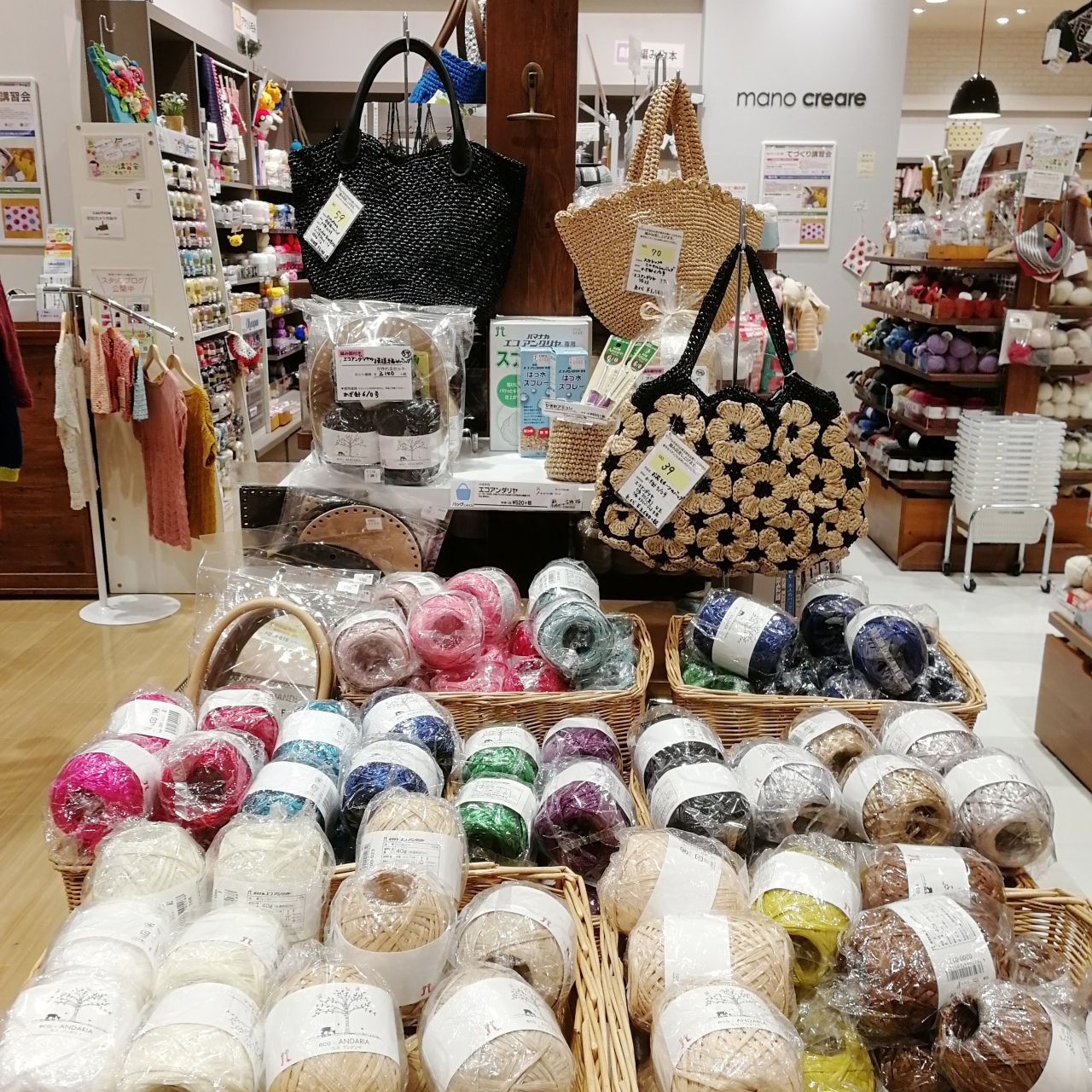みなとみらい店では、春夏の糸が一部入荷したよ!今回は春を先取りにオススメのバッグサンプルと一緒にご紹介するね♪