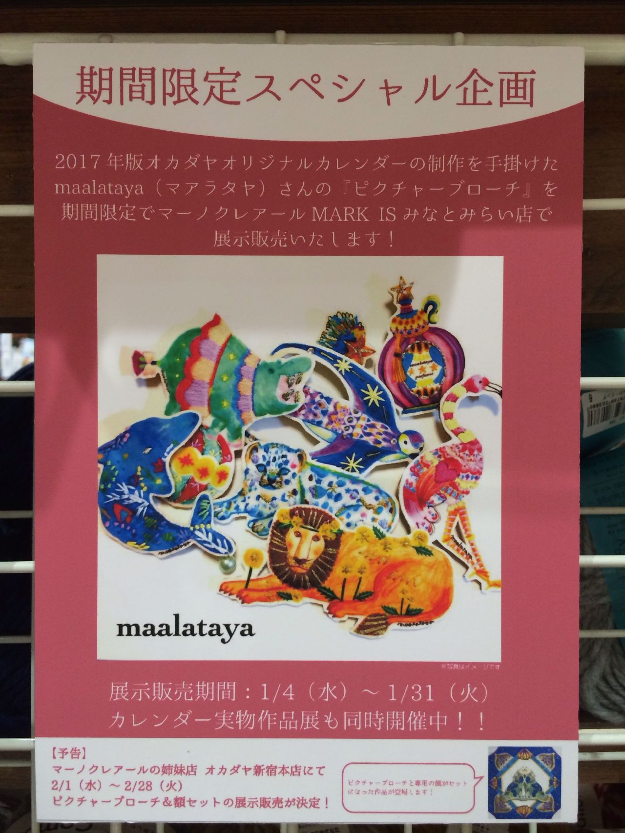 2017年のオカダヤカレンダーの作品を制作してくれたmaalataya(マアラタヤ)さんの作品を展示&販売中です。