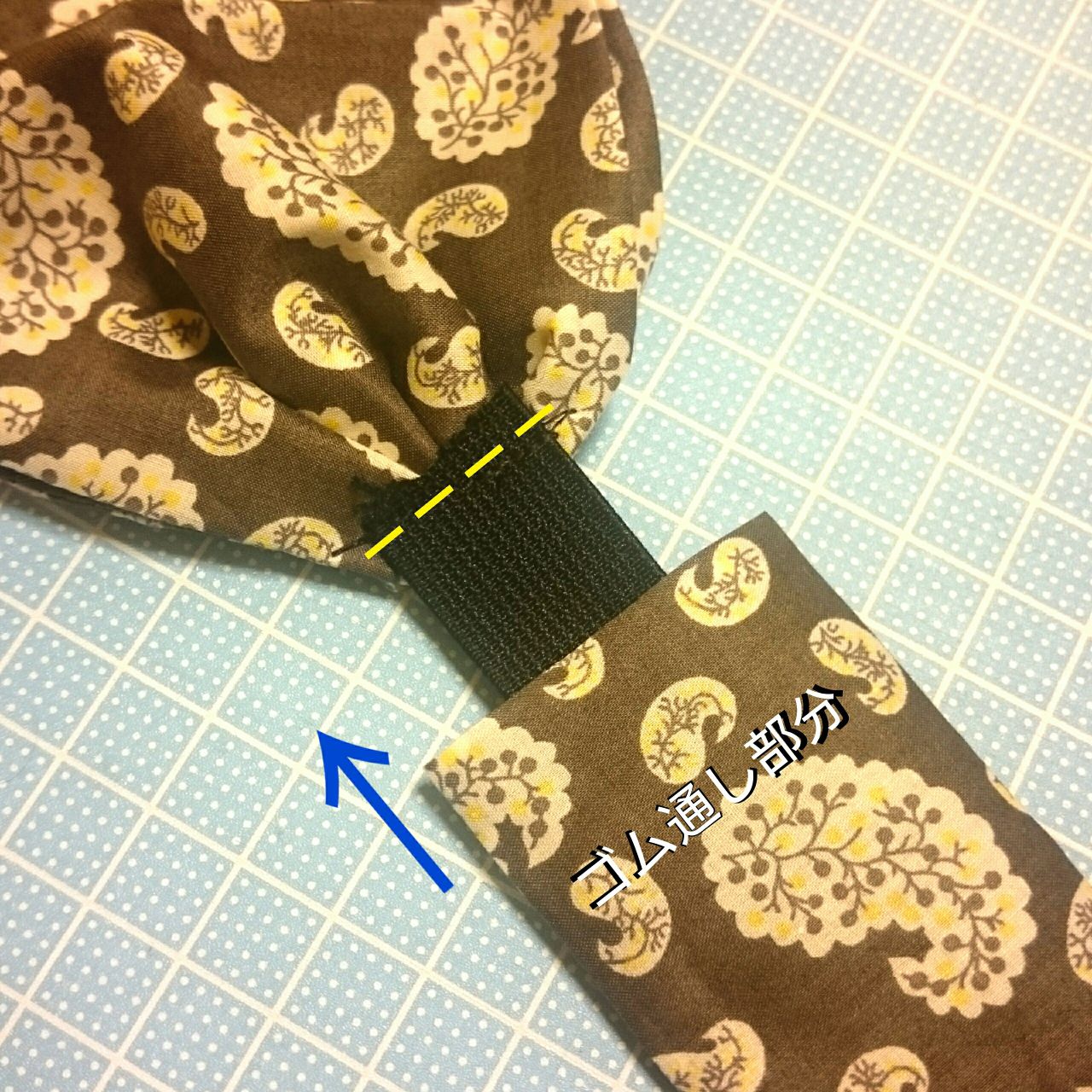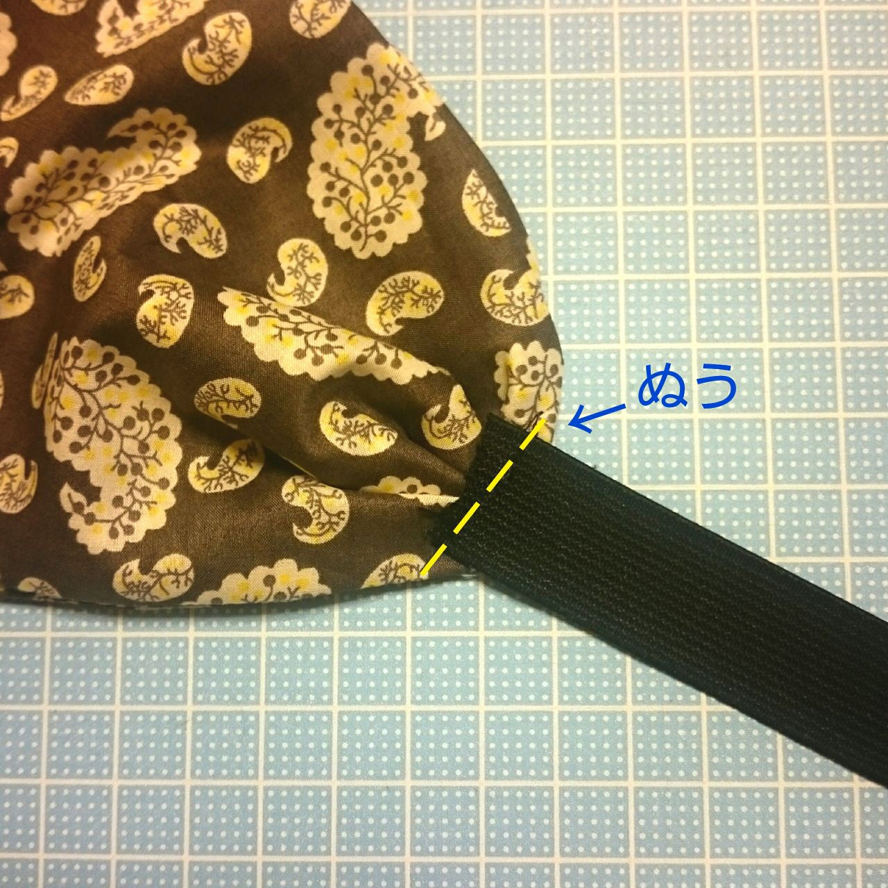 ゴム通し部分にゴムに通して、本体部分をキレイに入れ込んで、端を縫います。