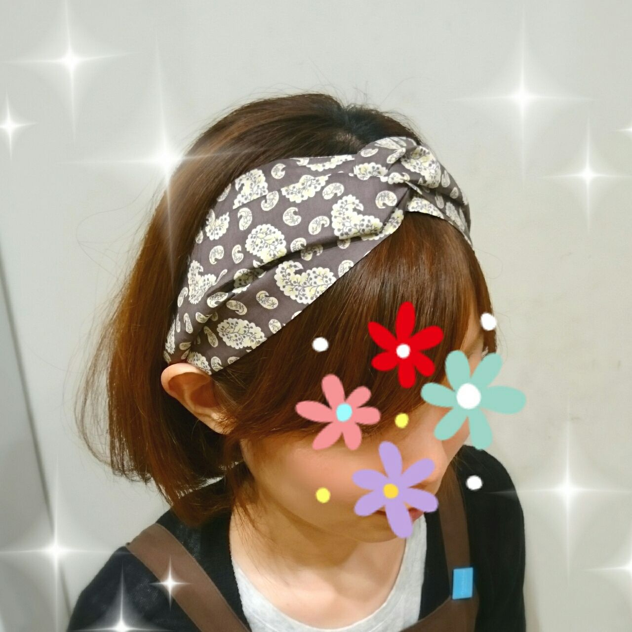 落ち着いた色のペイズリー柄が、どんなヘアスタイルにも馴染んでとっても素敵☆