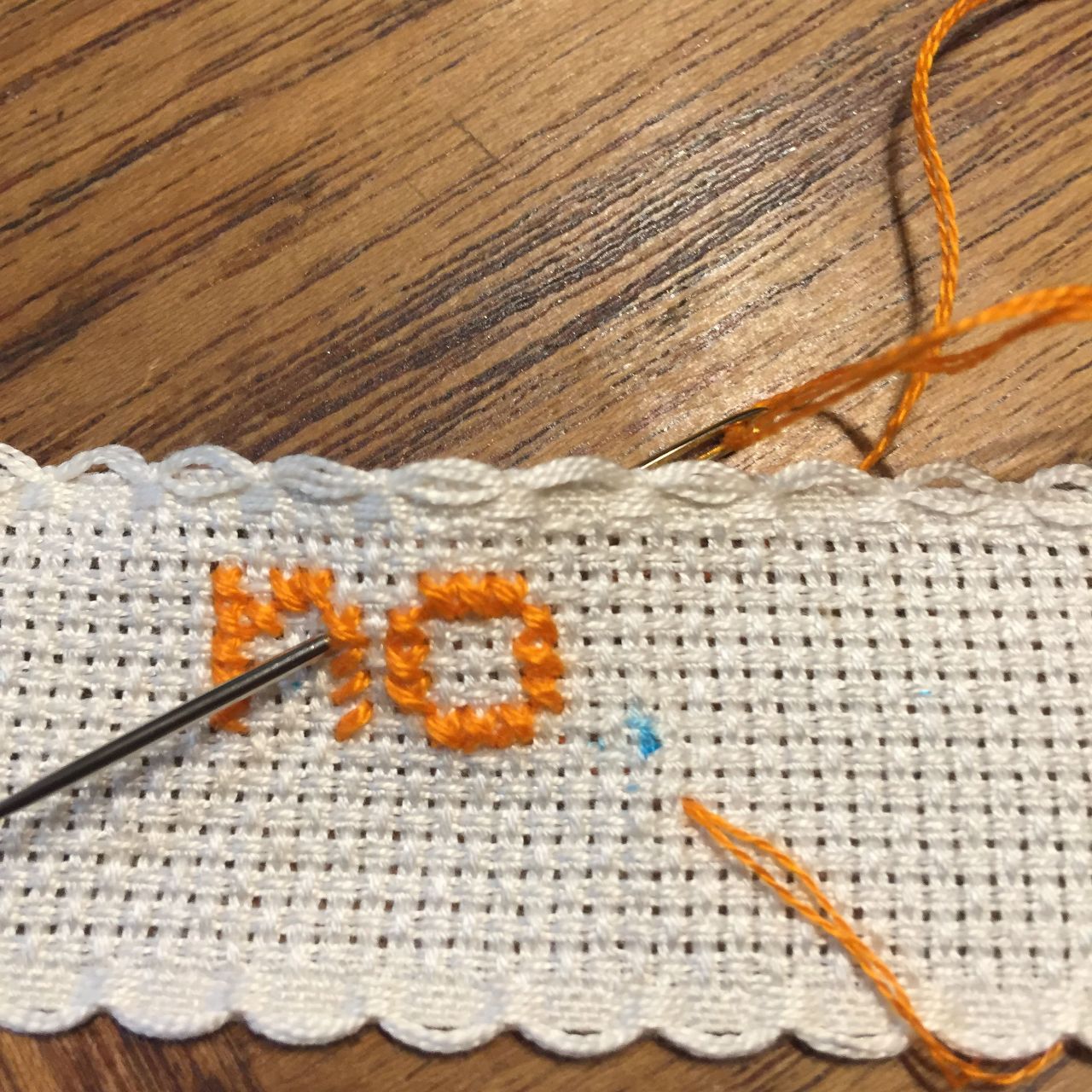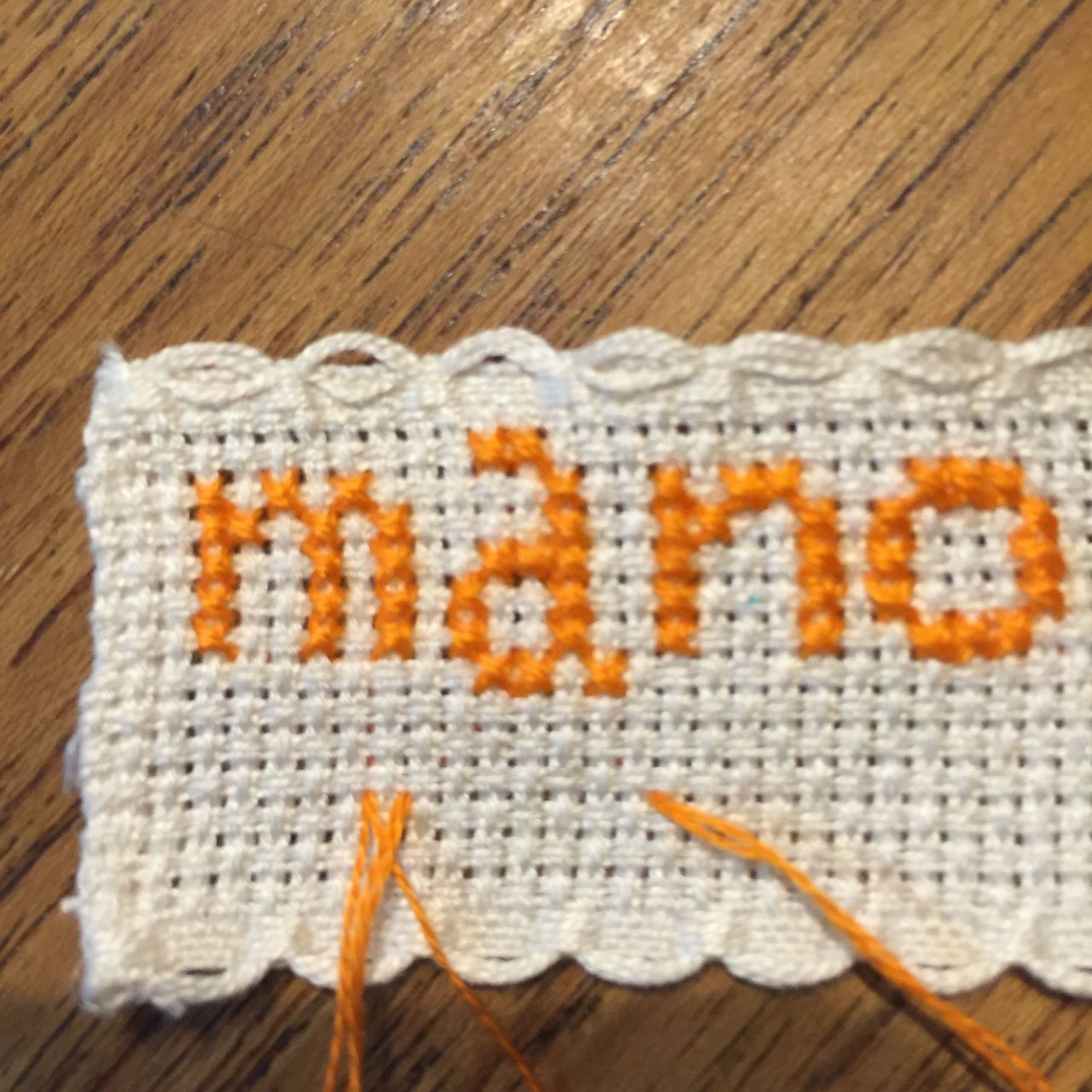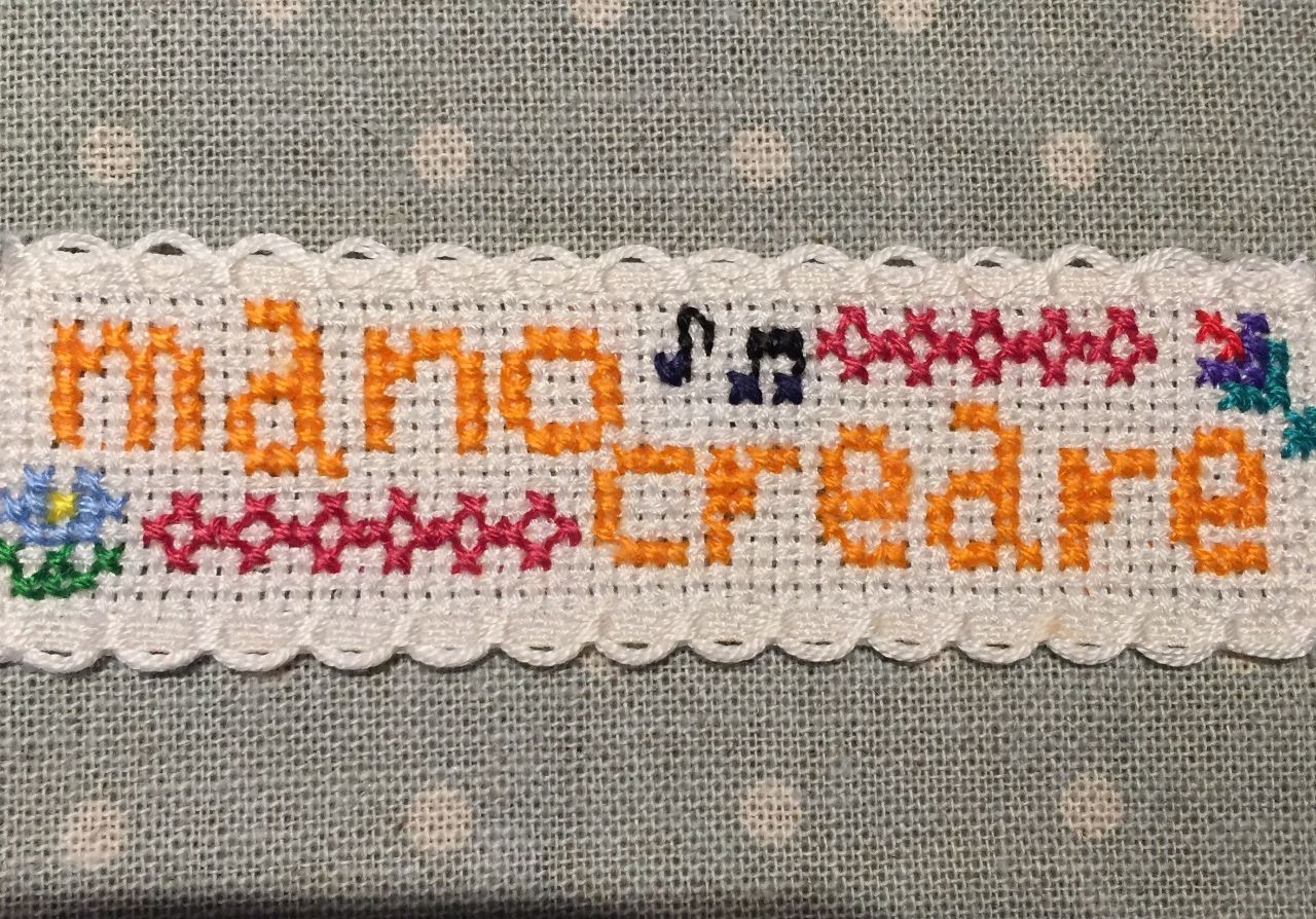 テープ状になったクロスステッチ用生地でネームラベルを作ってみました。