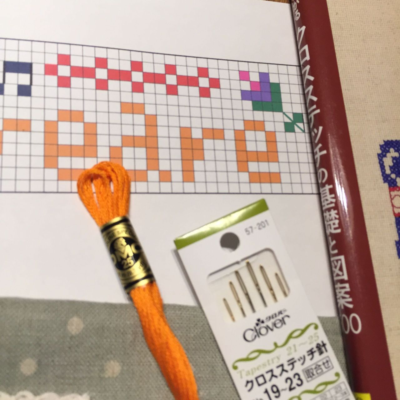 他にクロスステッチ用針、DMC25番刺繍糸。