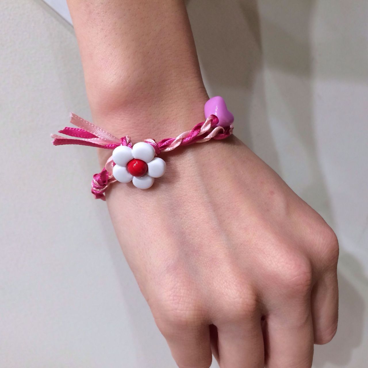 ハンディヤーンツイスターを作って、リボンをねじねじしてブレスレットにするんだよ(^^)