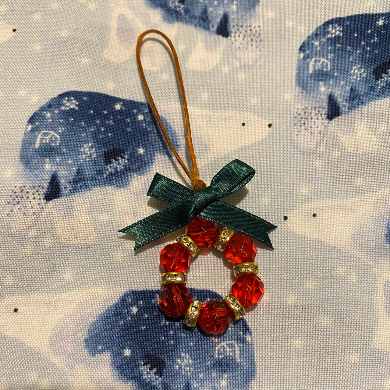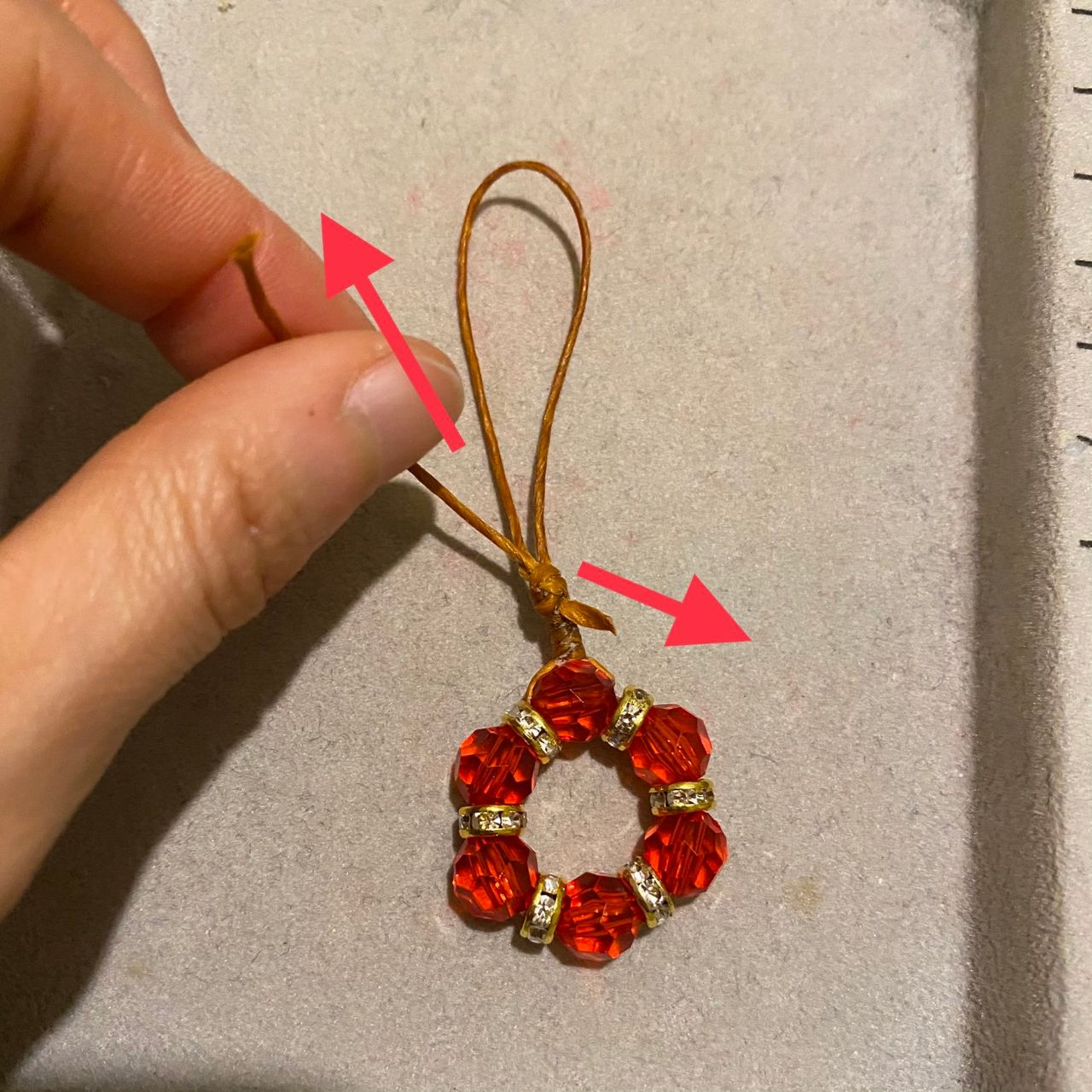 鞄やポーチなどにつけるとリースがキラキラっと輝きます