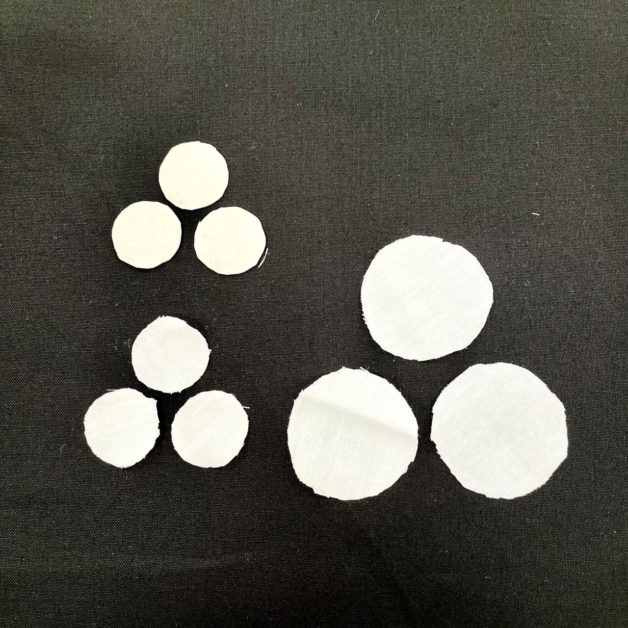 白い生地 半径1cm(気持ち小さめ)の丸を3枚