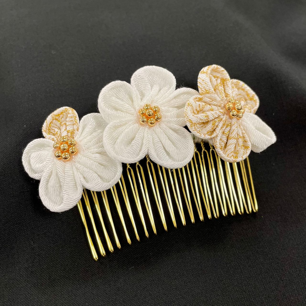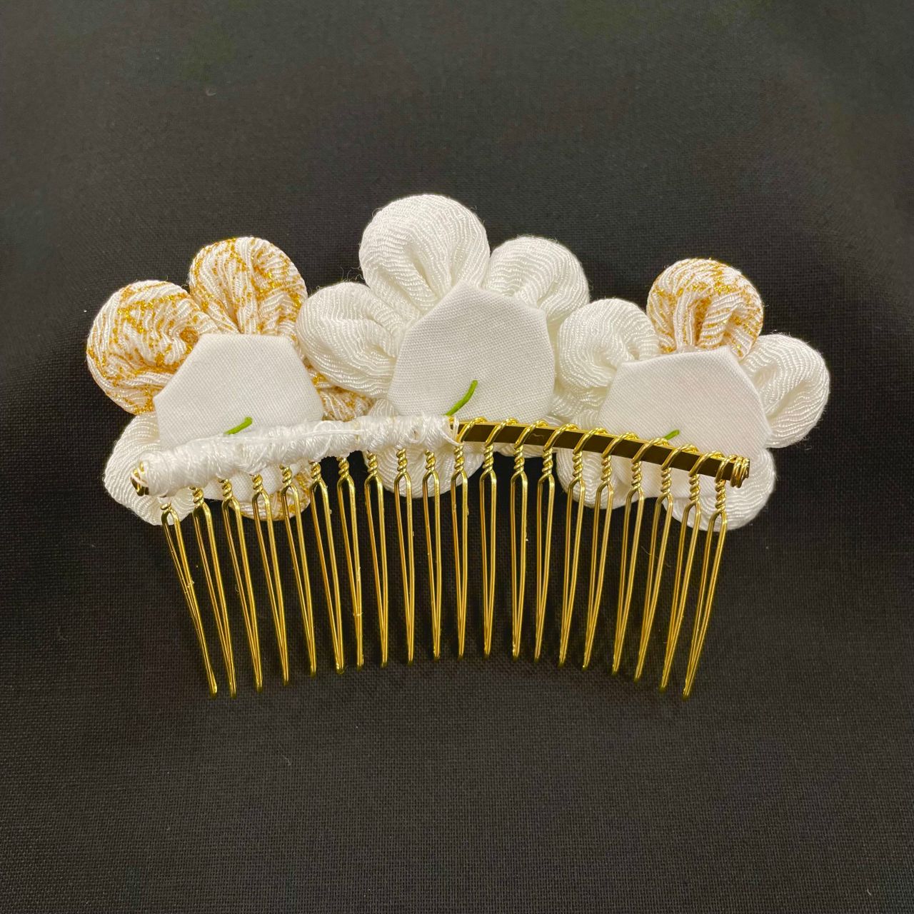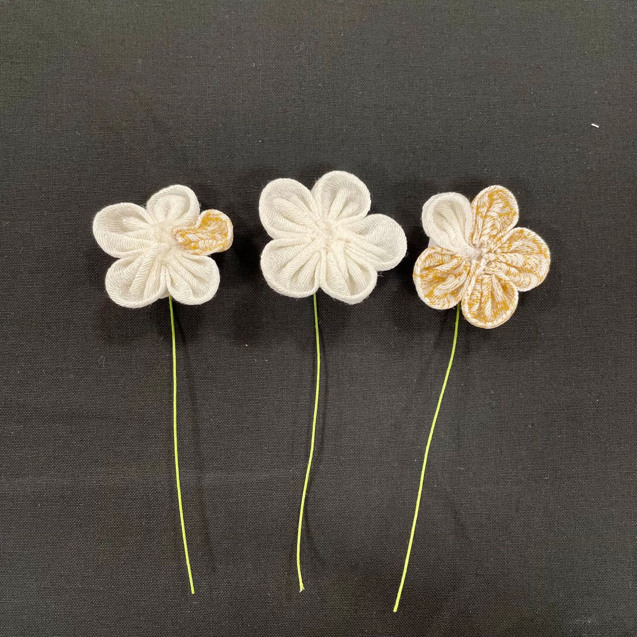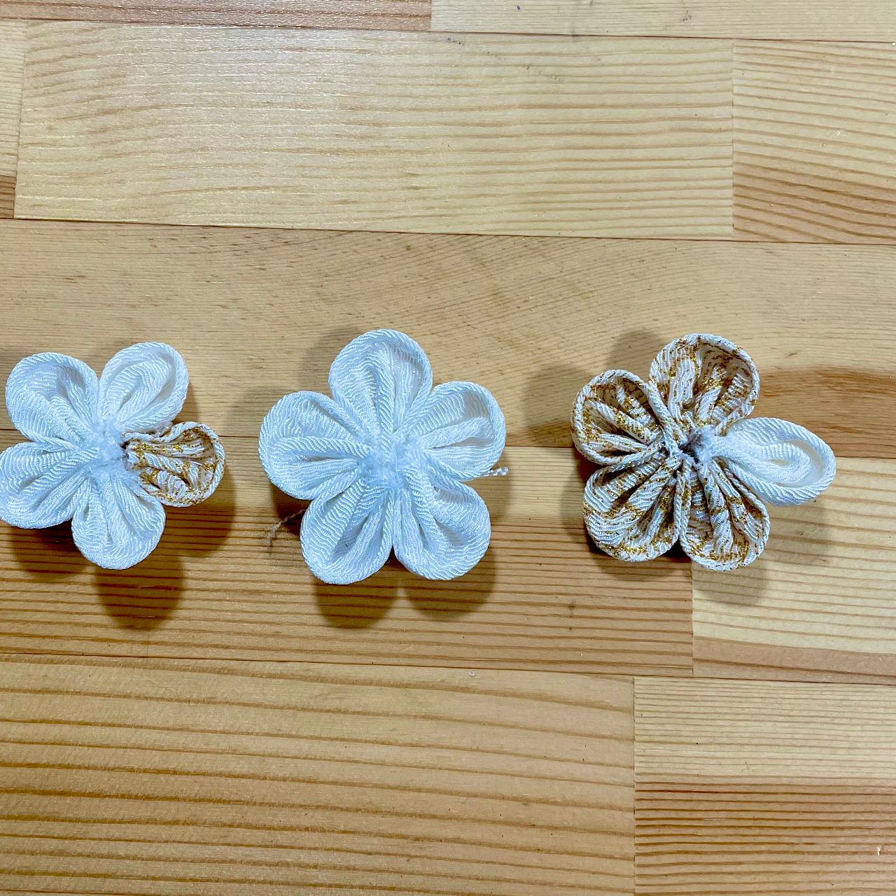 今回は白のみのお花、白に金彩1つのお花、金彩に白1つのお花の3種類を作ってみました。