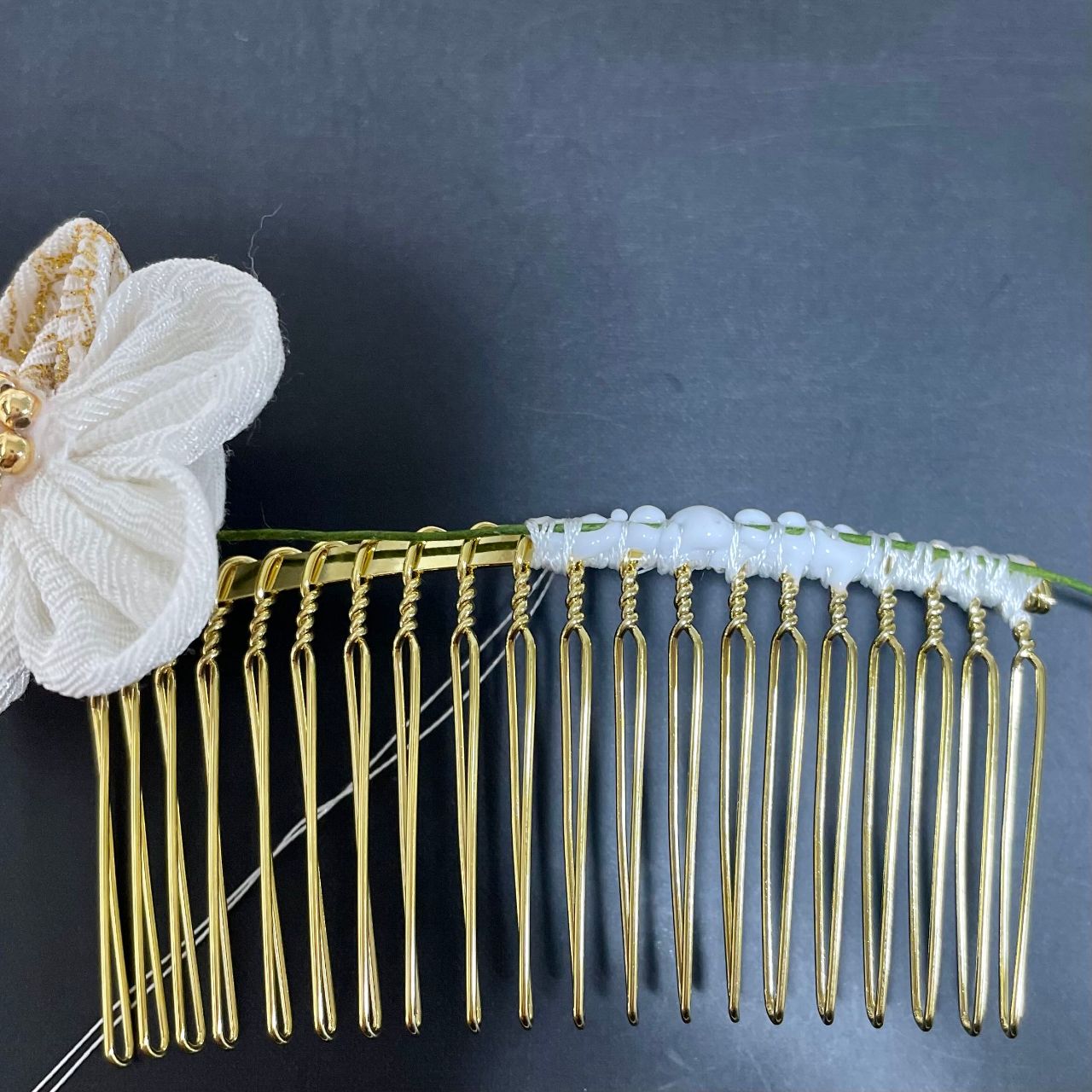 これを位置を整えながら繰り返し、お花をコームに巻き付けます。