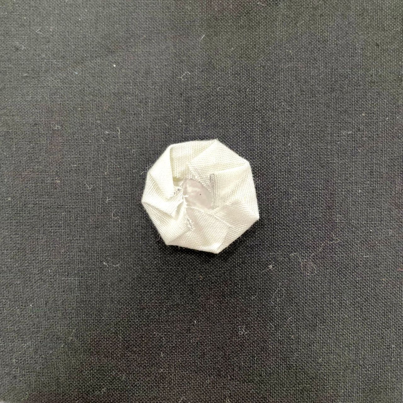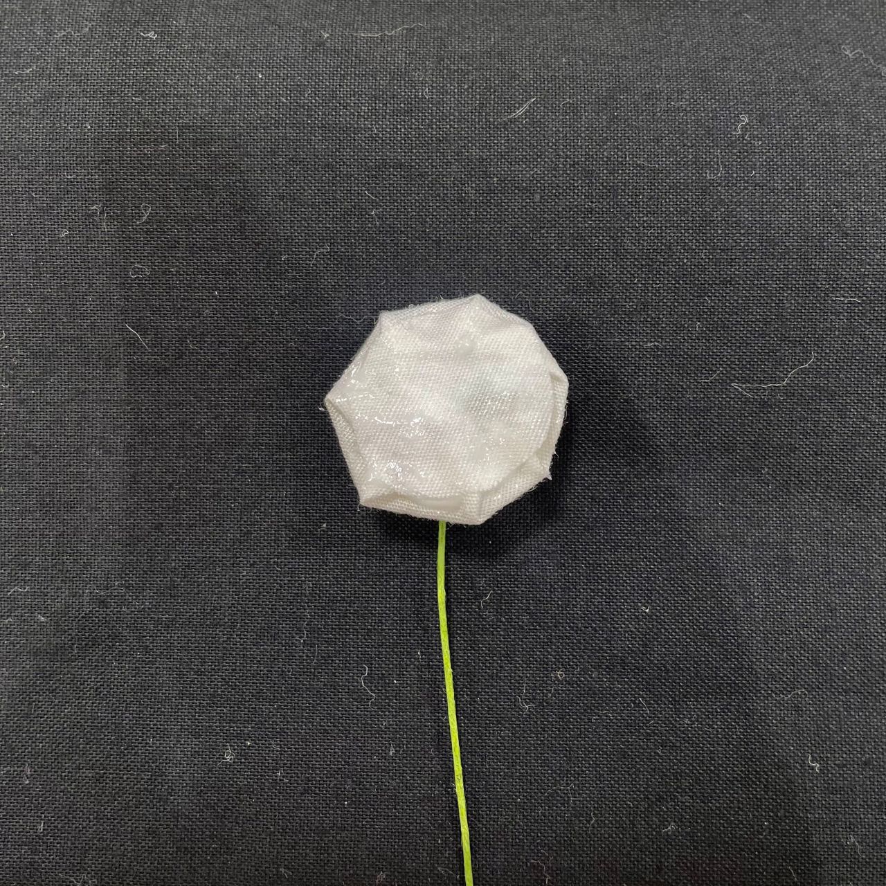 グルーが固まったら、半径1cmの丸に切った白い生地を土台にボンド(少し多め)で貼り合わせます。