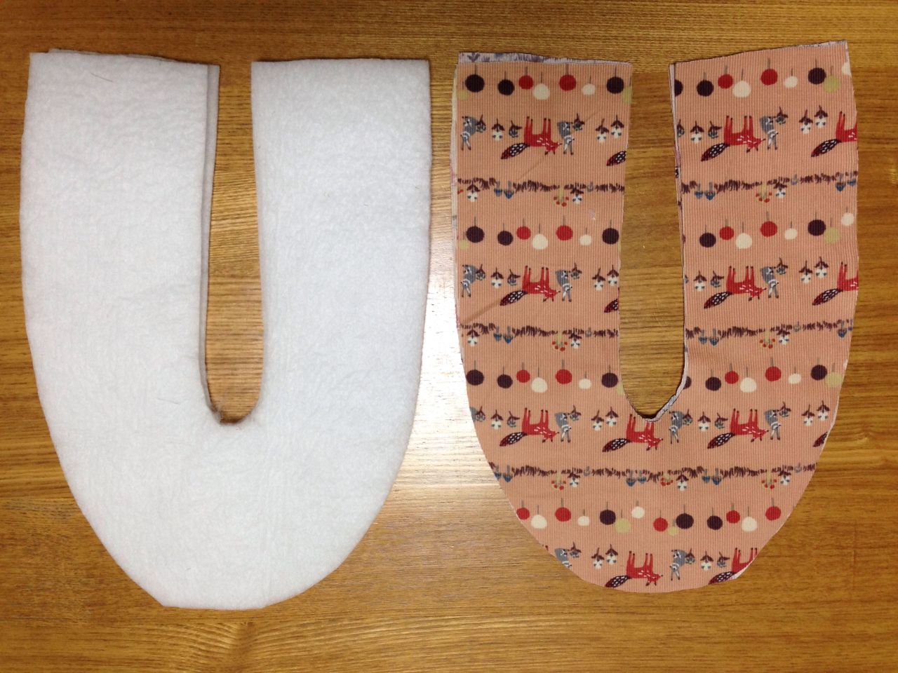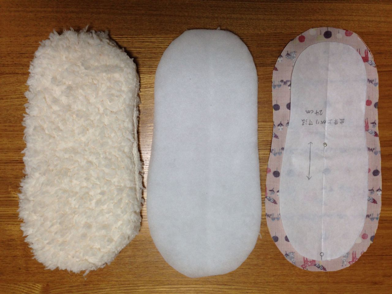 内側側面には、プードルボアの底布を返し口を7㎝ほど残し縫い付けます。
