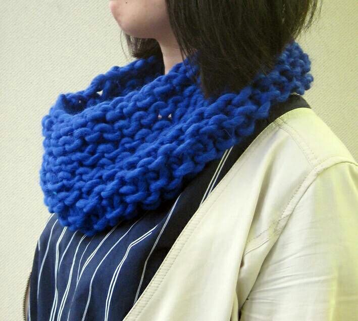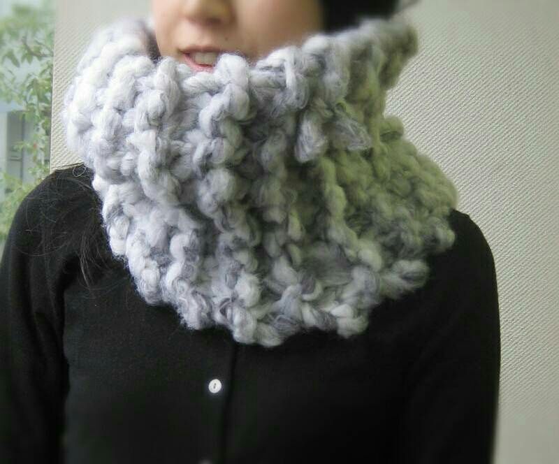 ごんぶとの糸を棒針のお化けみたいなジャンボ針で編むのが楽しいスヌードも、手軽にザクザク編んで身に付けて帰りましょう!!