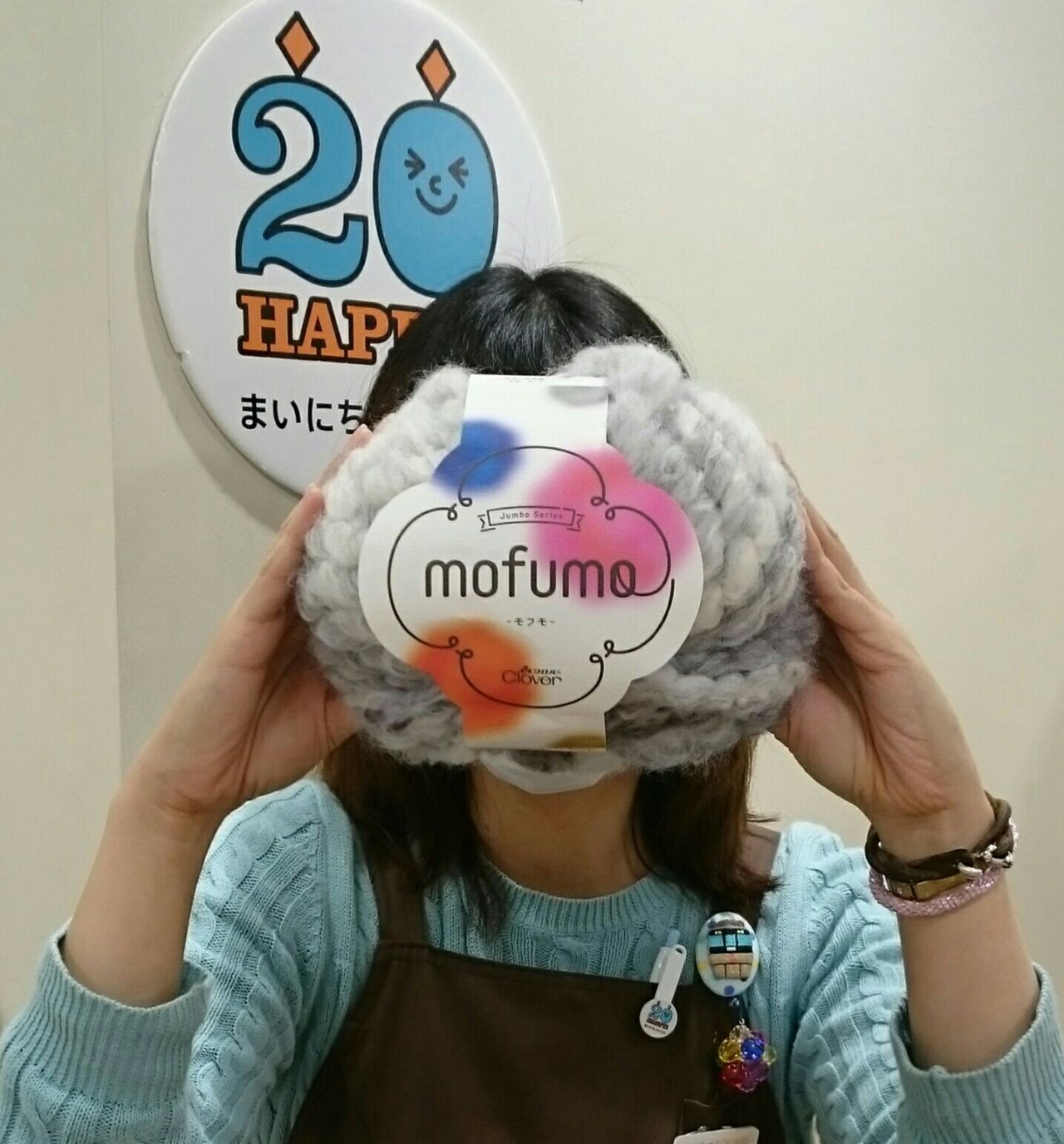 よーく見てくださいね。毛糸人間、ではなくて、この『モフモ』は小顔なスタッフの顔より大きい毛糸だまです。