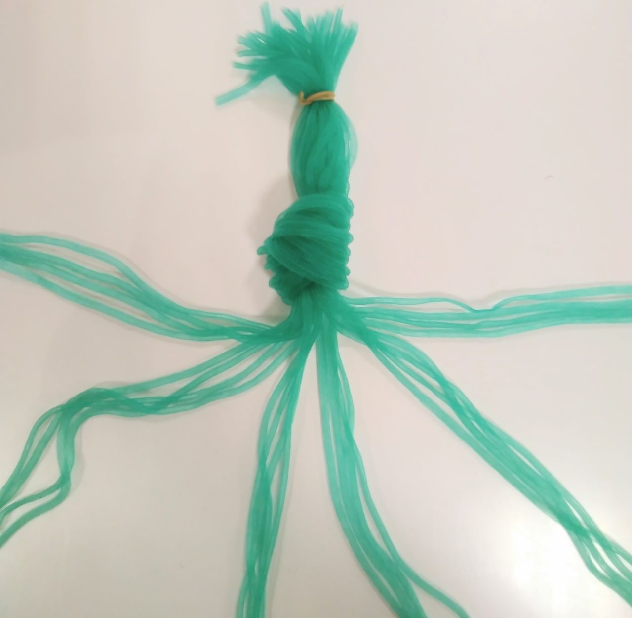 1.24本をまとめて端を5~8cm残してひと結びにします。
