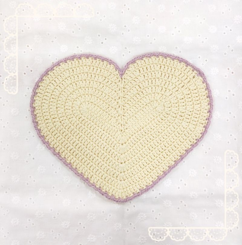 こちらはかぎ針5号で編んだハートのニッタオルです。