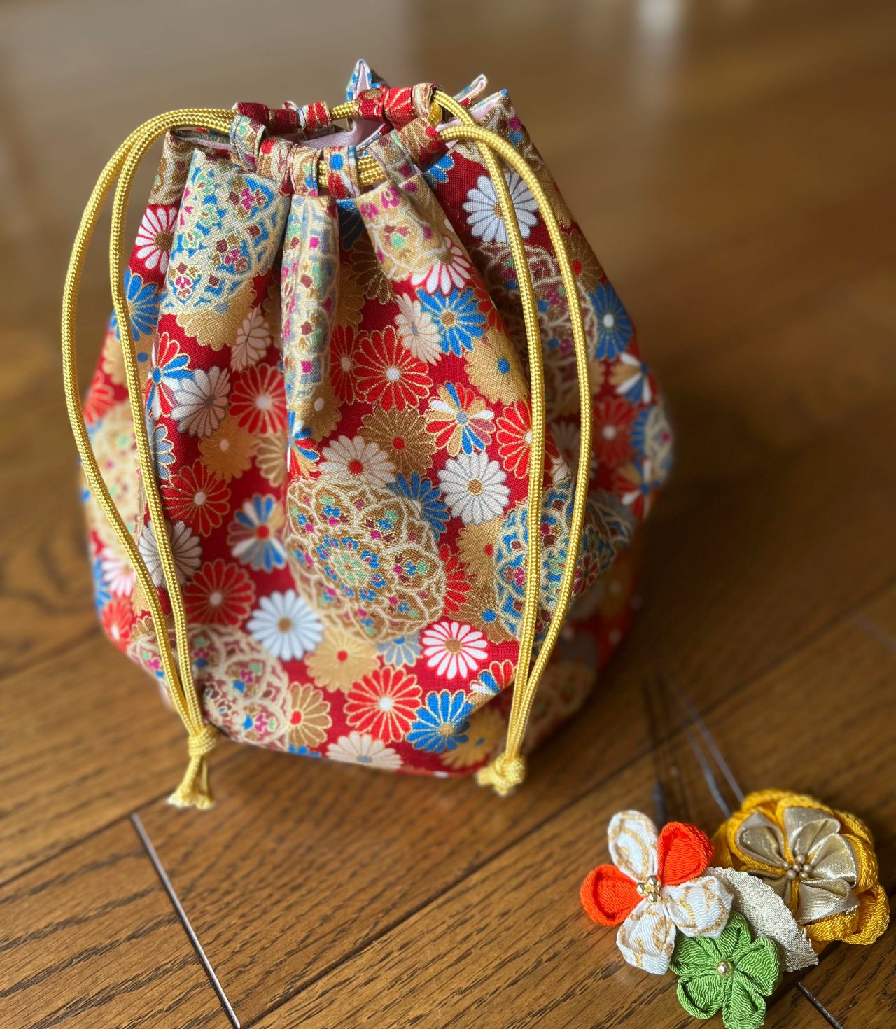 晴れの日の和柄巾着 手作り巾着