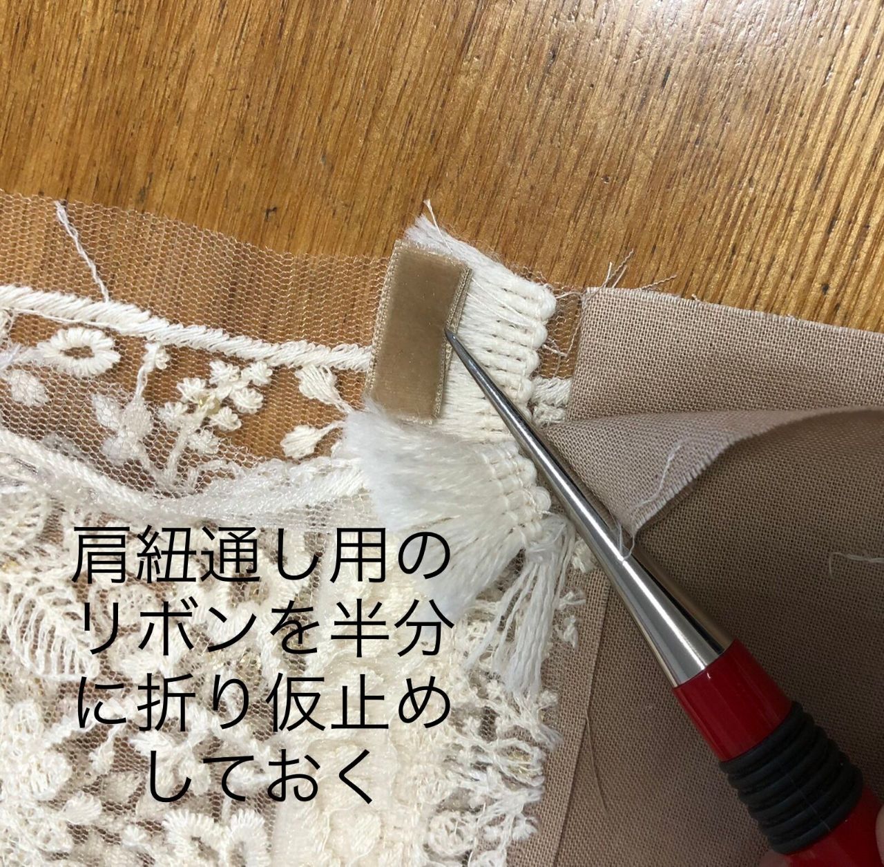 刺繍リボンと裏地を中表に合わせて1.5㎝のところを縫う