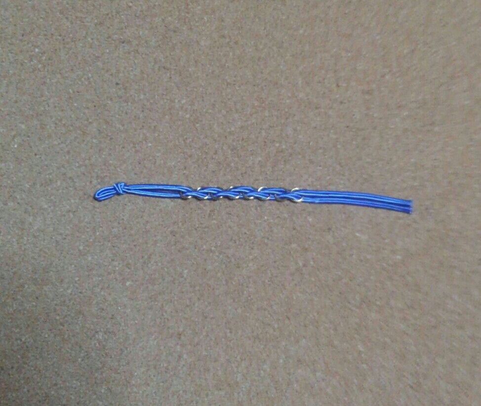 上と下のコードを左右交互にくり返し8個丸カン全部に通したら、
