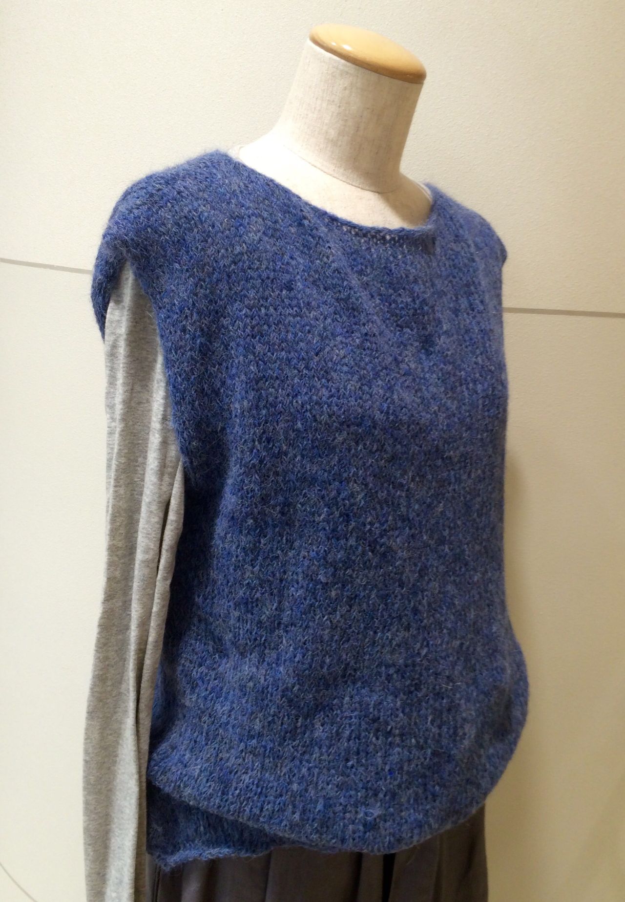写真のベストはまっすぐ編んでとじあわせるだけ!のカンタンニッティング、なのに