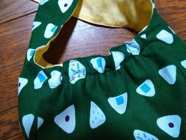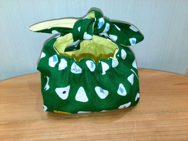 3月25日のトレッサ横浜店のblogでご紹介していた、おにぎり柄の生地で、私もかわいいお弁当袋を作ってみました!
