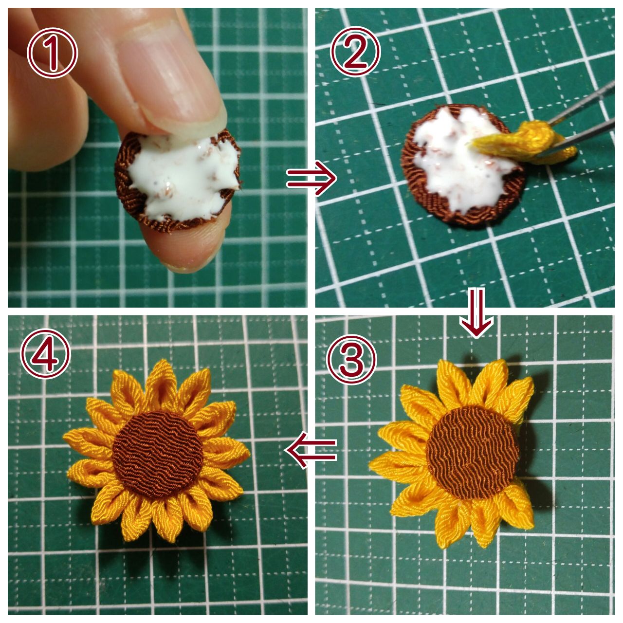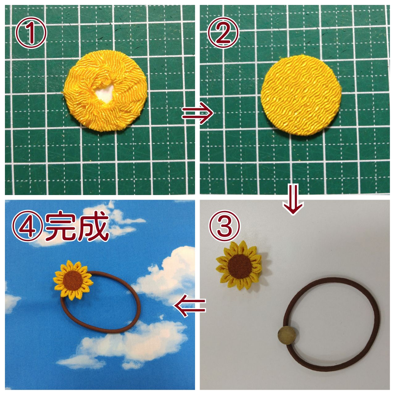 □初めてさんでも簡単!つまみ細工で作るヒマワリの髪ゴム□