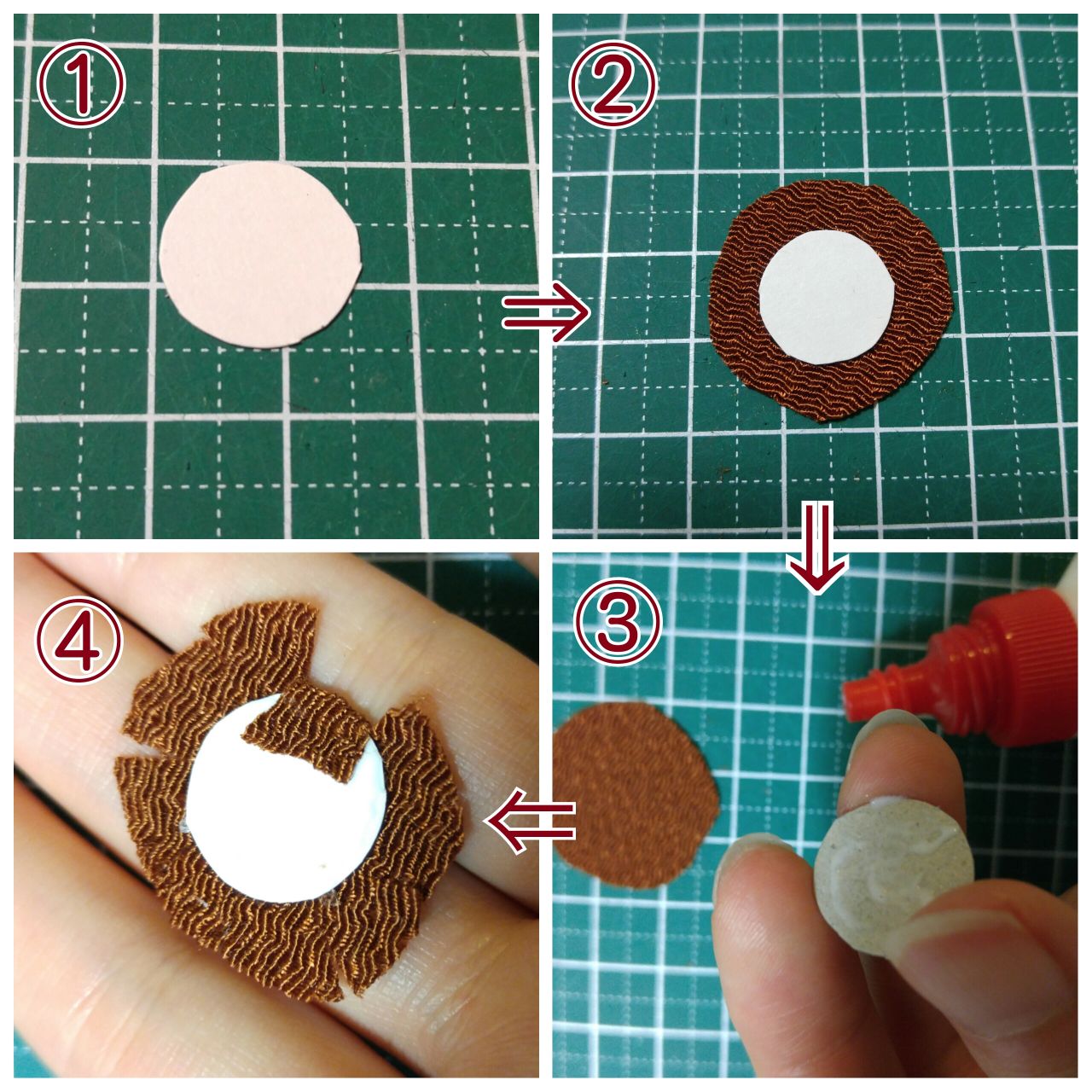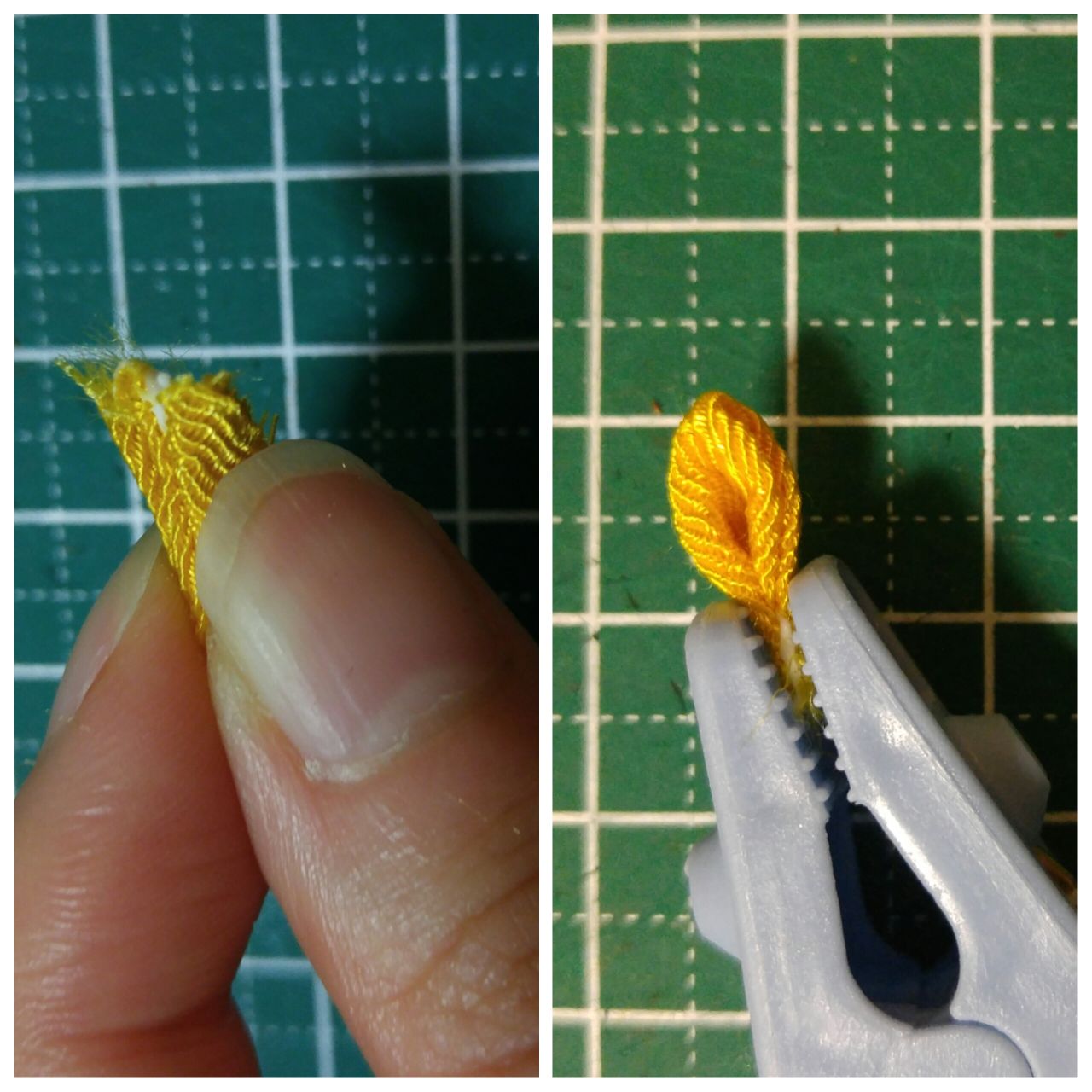 ①〜②先ほど茶色と一緒に作っておいた黄色のパーツです