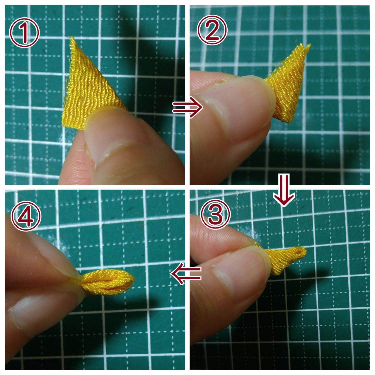 ※黄色のちりめんで同じパーツをもう一つ作っておいて下さい