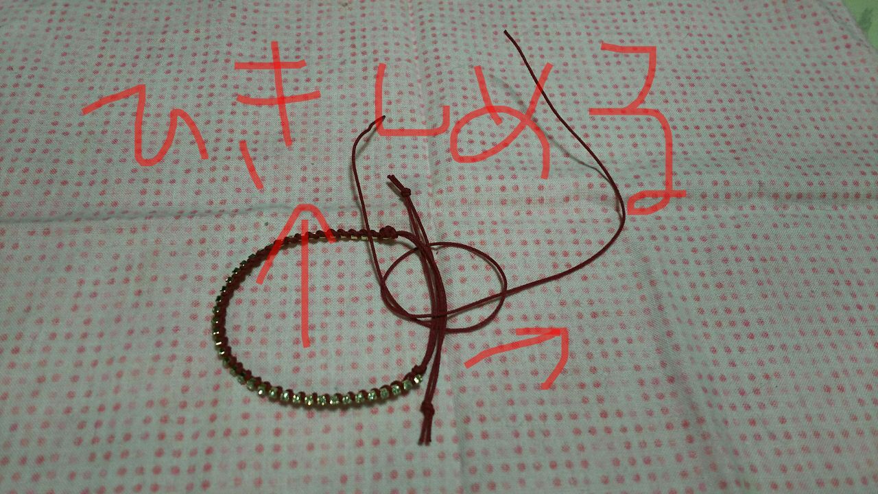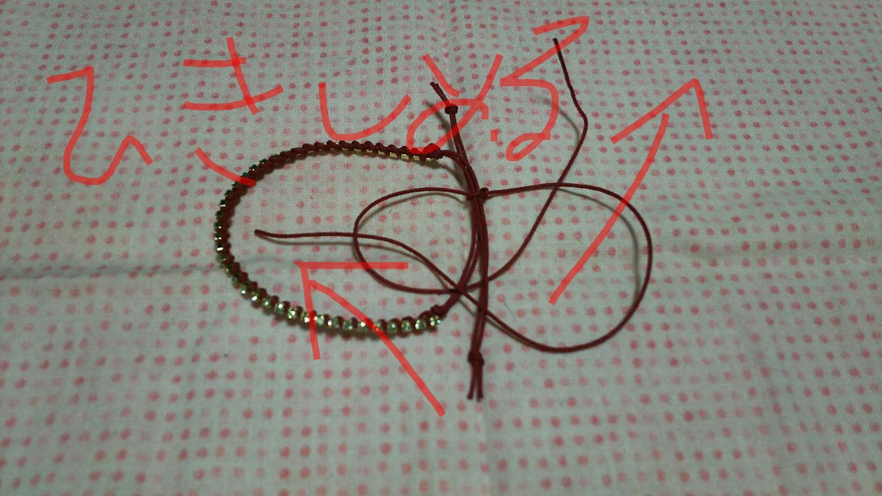 45cmのコードにダイヤレーンを重ねて、55cmのコードをダイヤレーンの連結部分にぐるぐる巻き付けます