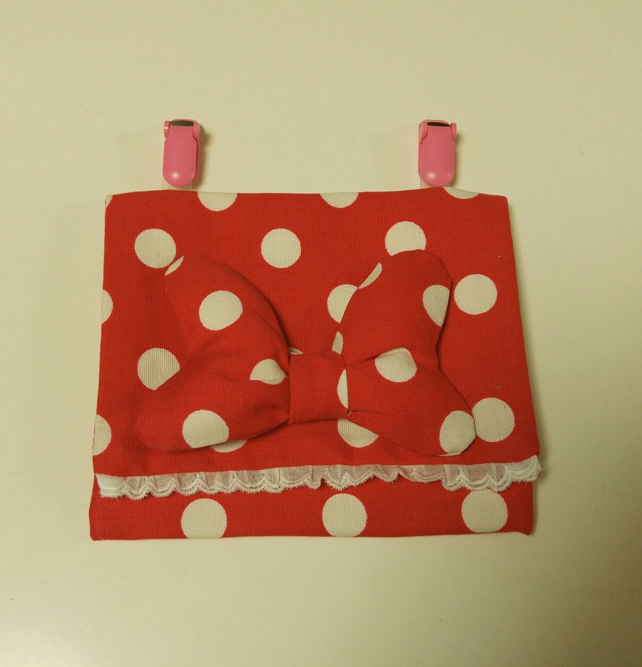 今回はミニーちゃん風ポケットバッグを作ってみましたっ