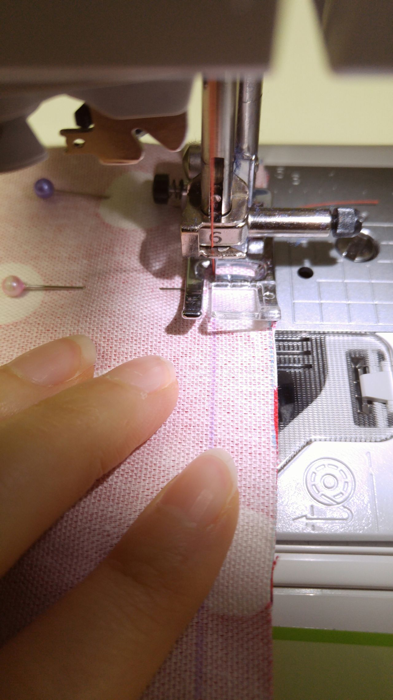 左右の縫い代1cm分は縫わないようにレースを避けてくださいね