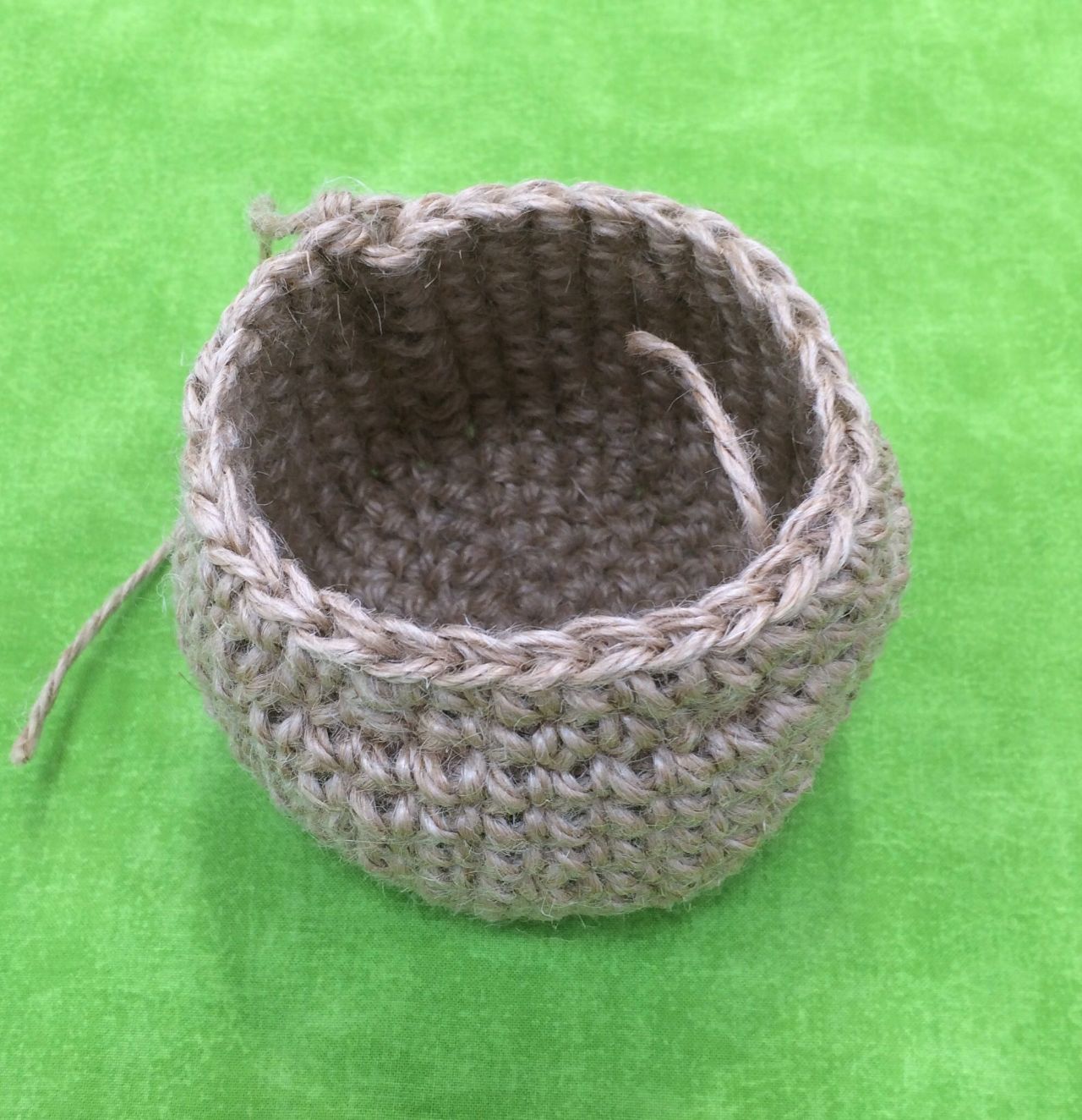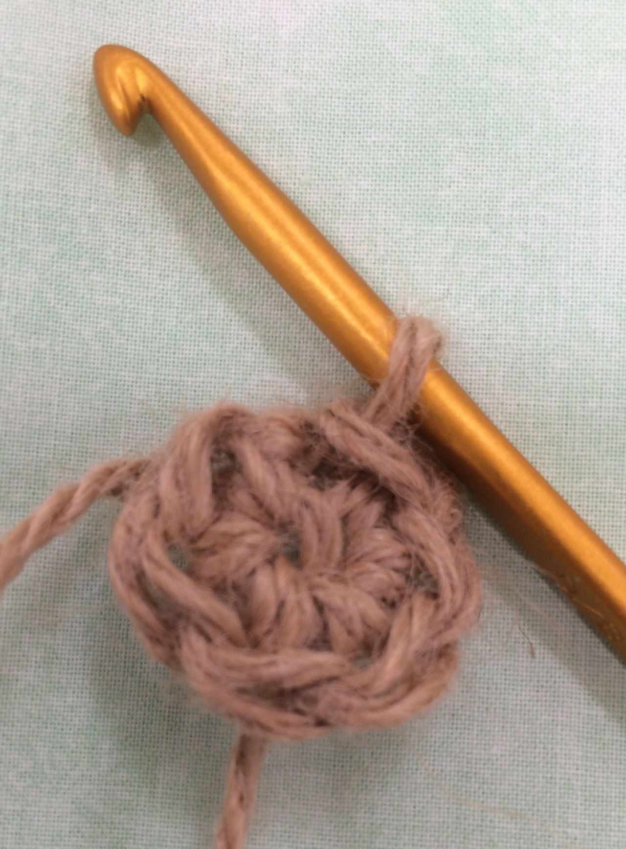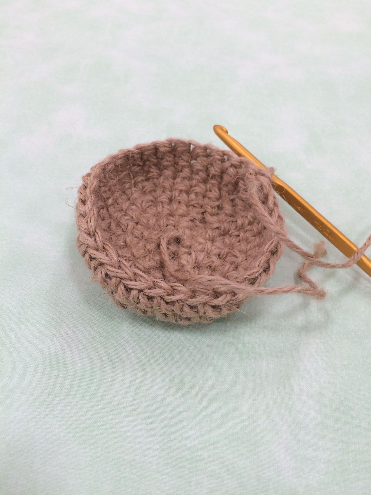 増やし目をしながら6段編み、増やし目をせず立ち上げて7段編みます