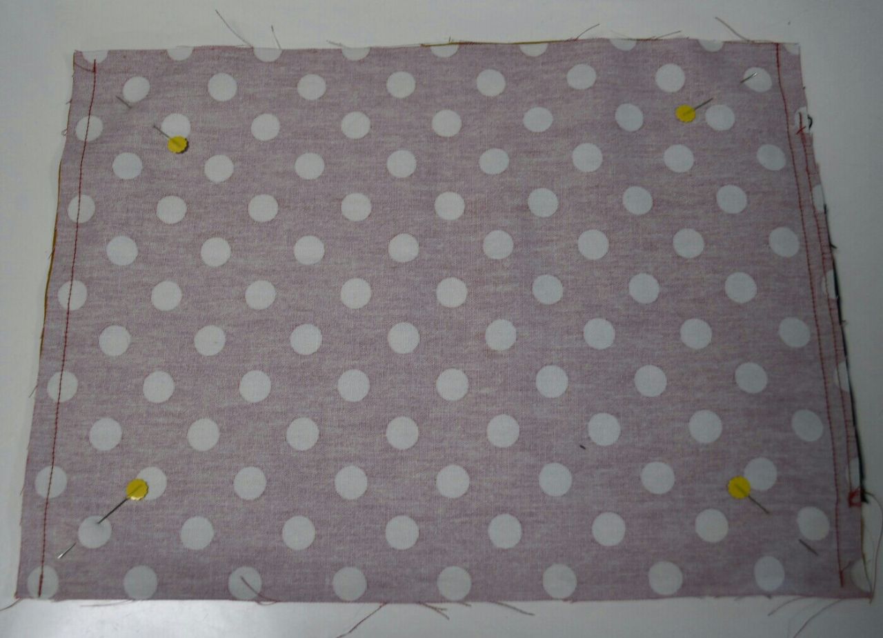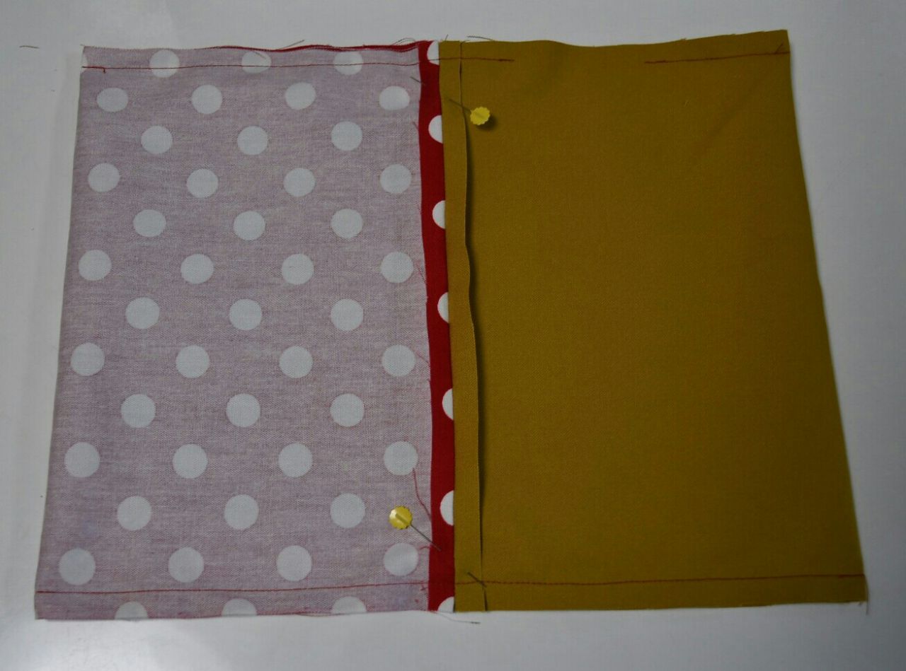 ⑤表生地と裏生地を中表にしてカバンの口部分になる二辺を縫います。