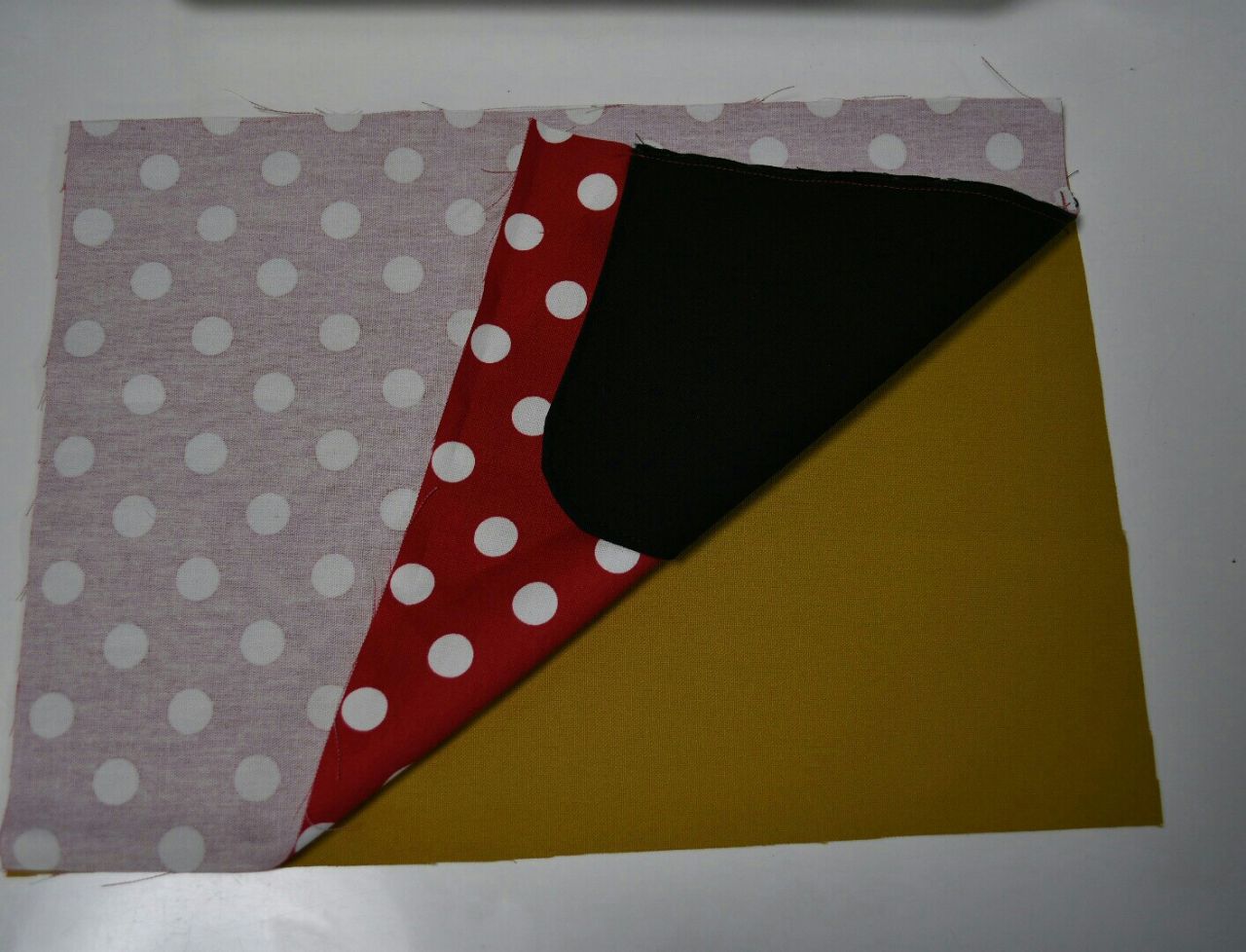 分かりづらいですが、上の一辺は残して残りはぐるりと縫います。
