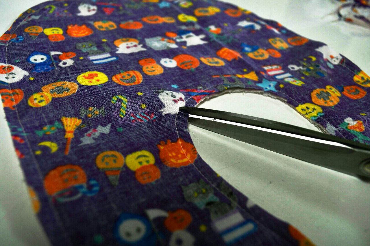 ③カーブの部分は1〜2cmおきに縫い目に垂直に切込みを入れます
