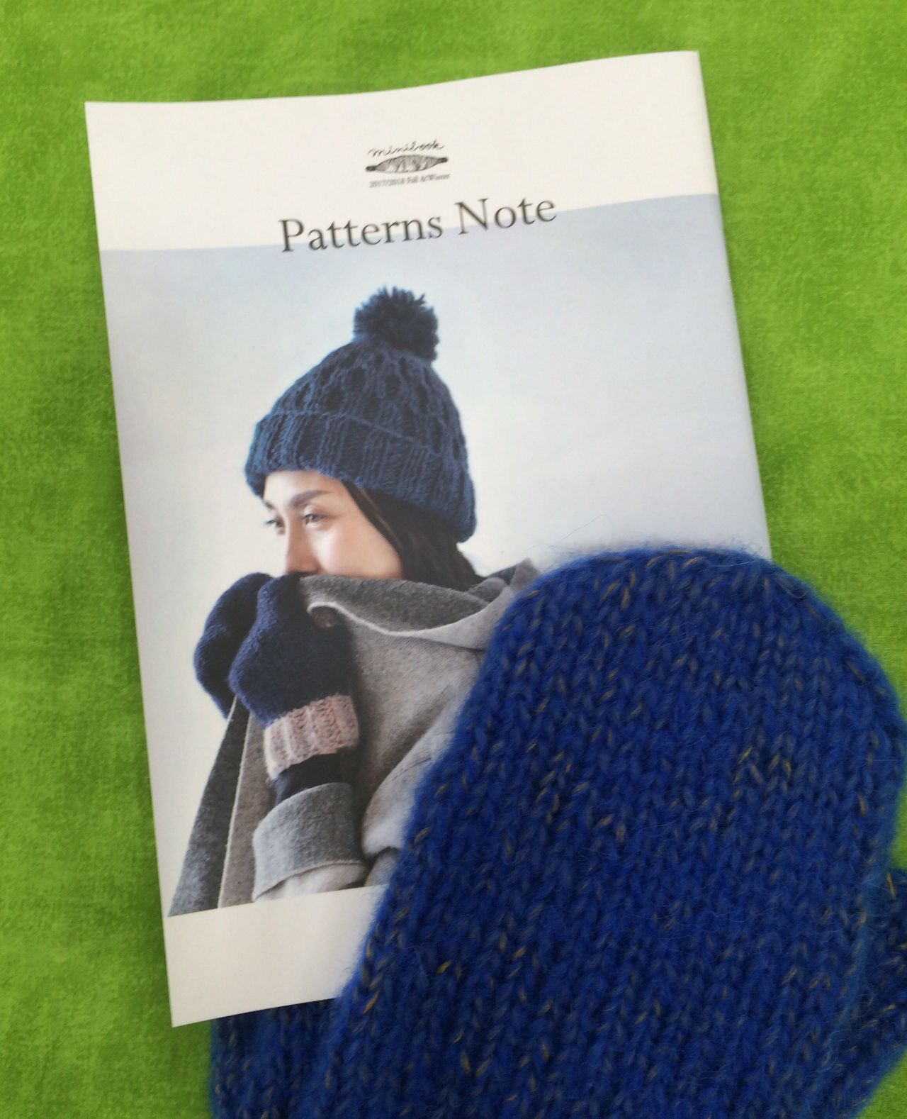 こちらのミトンの編み図は、ダルマの小冊子、Patterns Noteに掲載されています
