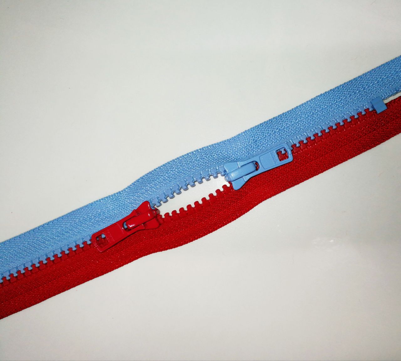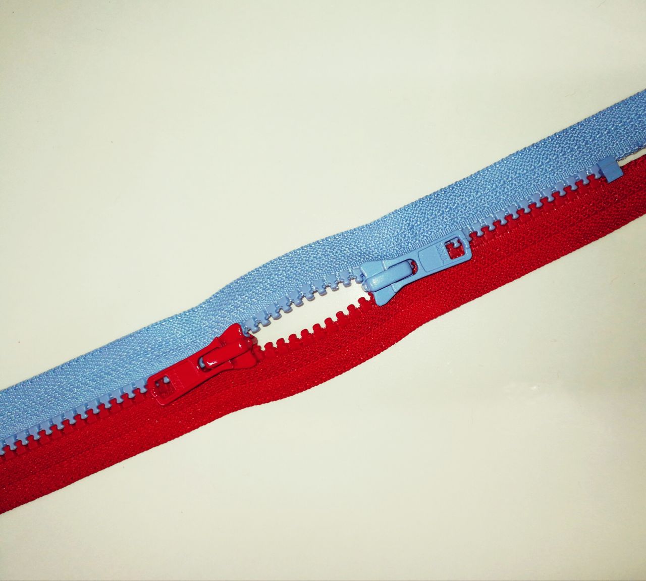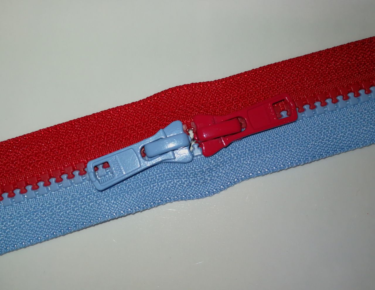 かわいいツートーンの両開きファスナーをご紹介します。