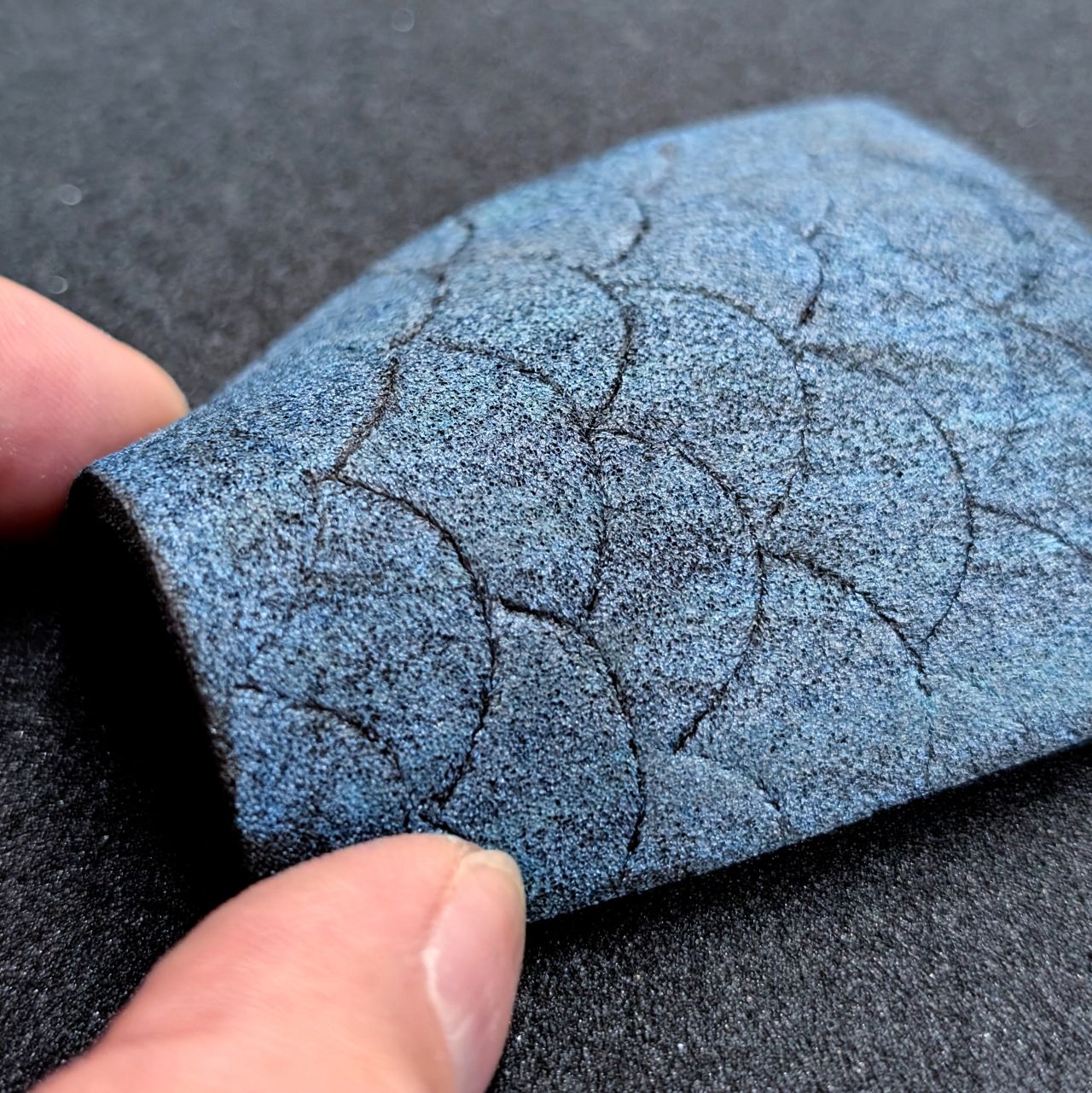 キズをつけやすいので先の丸い物(インクの出なくなったボールペンなど)で模様を付けてもしっかりと跡が残ります。