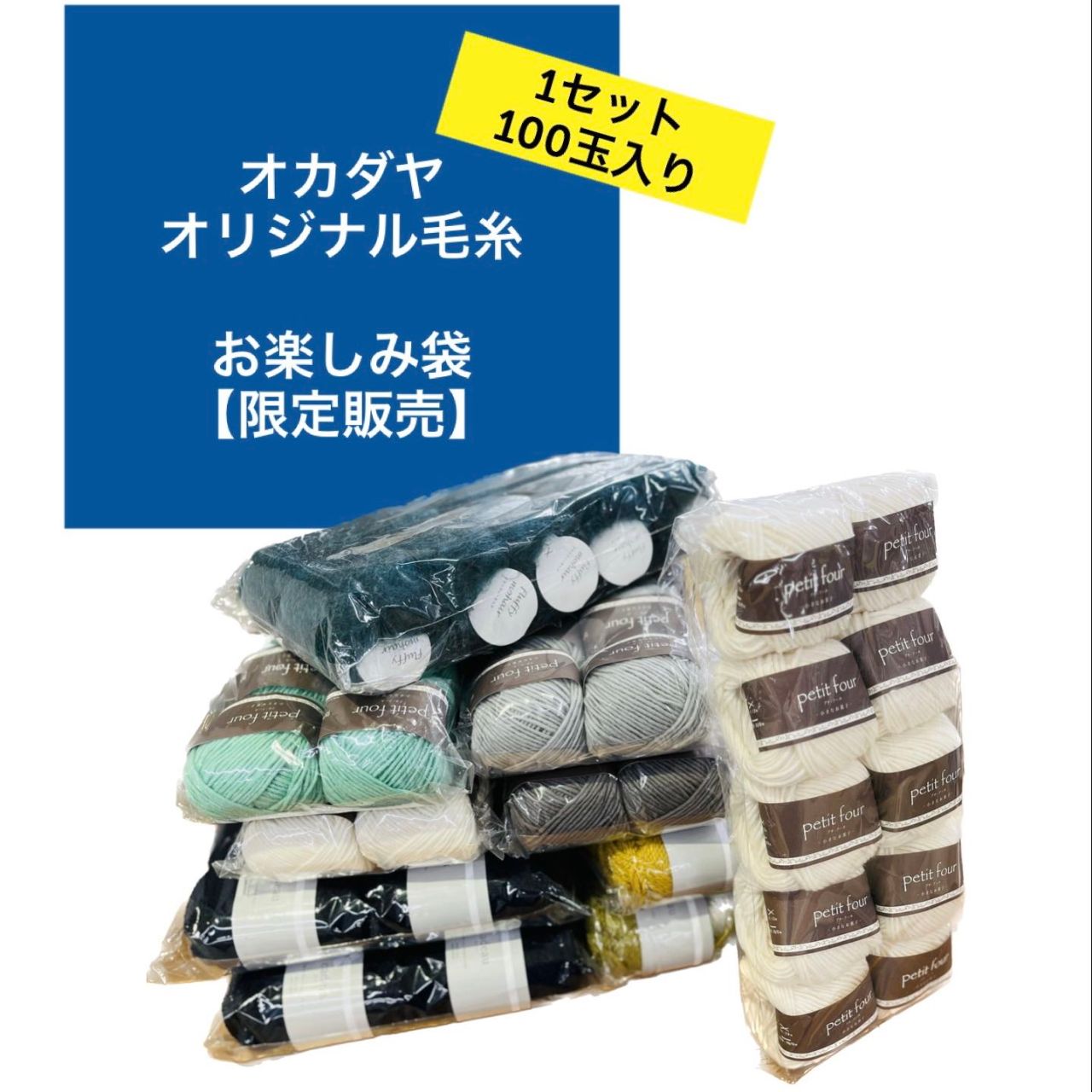 オカダヤオリジナル毛糸が、なんと!100玉も入ったスペシャルなお楽しみ袋が、明日、3月1日より限定販売!!