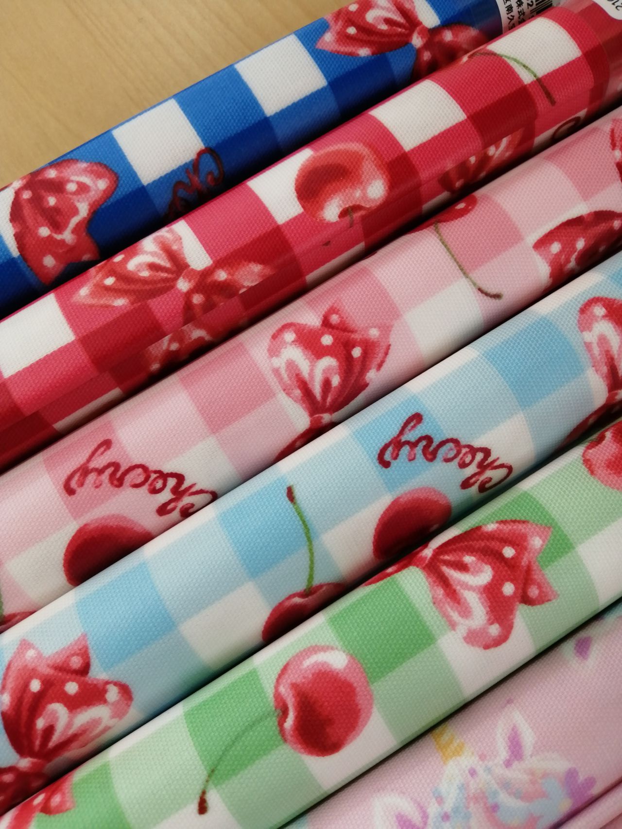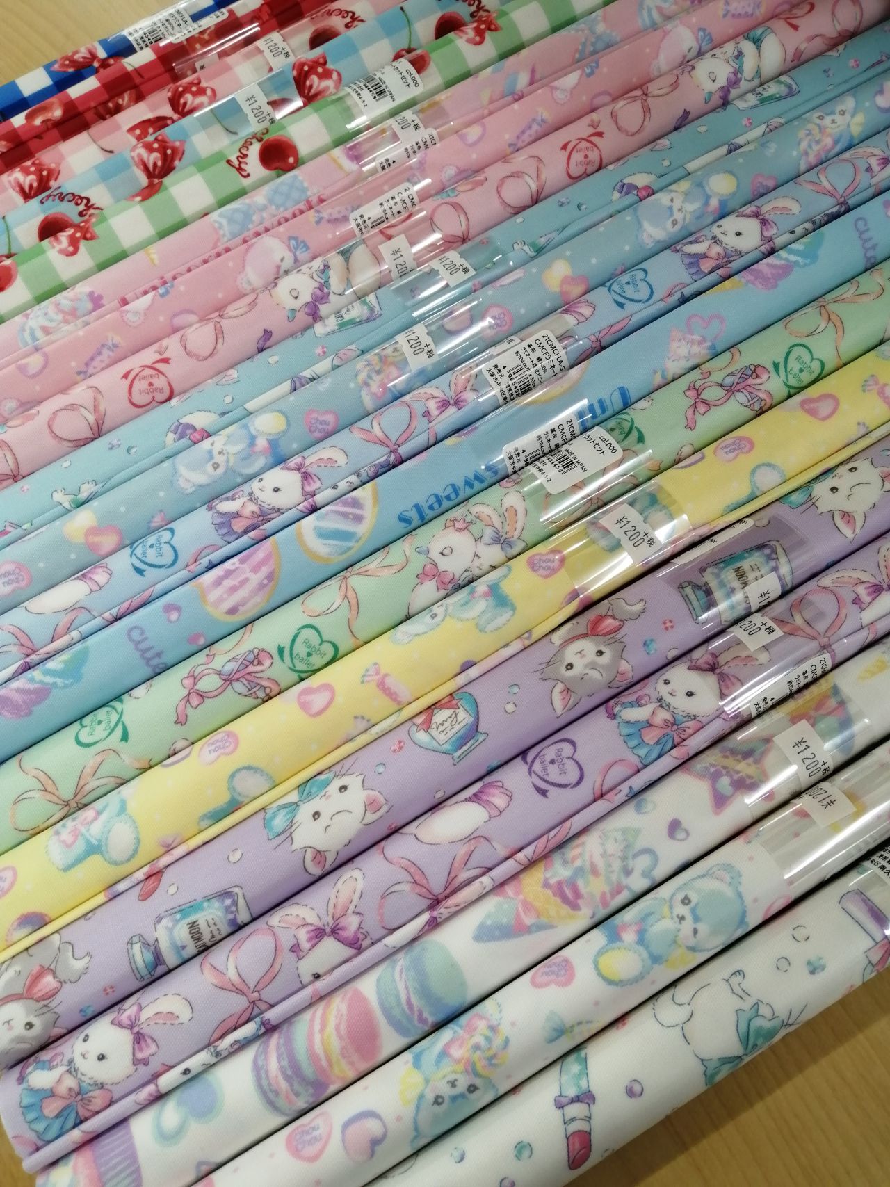 女の子に喜んでいただけそうなカワイイラミネート生地が入荷しました。