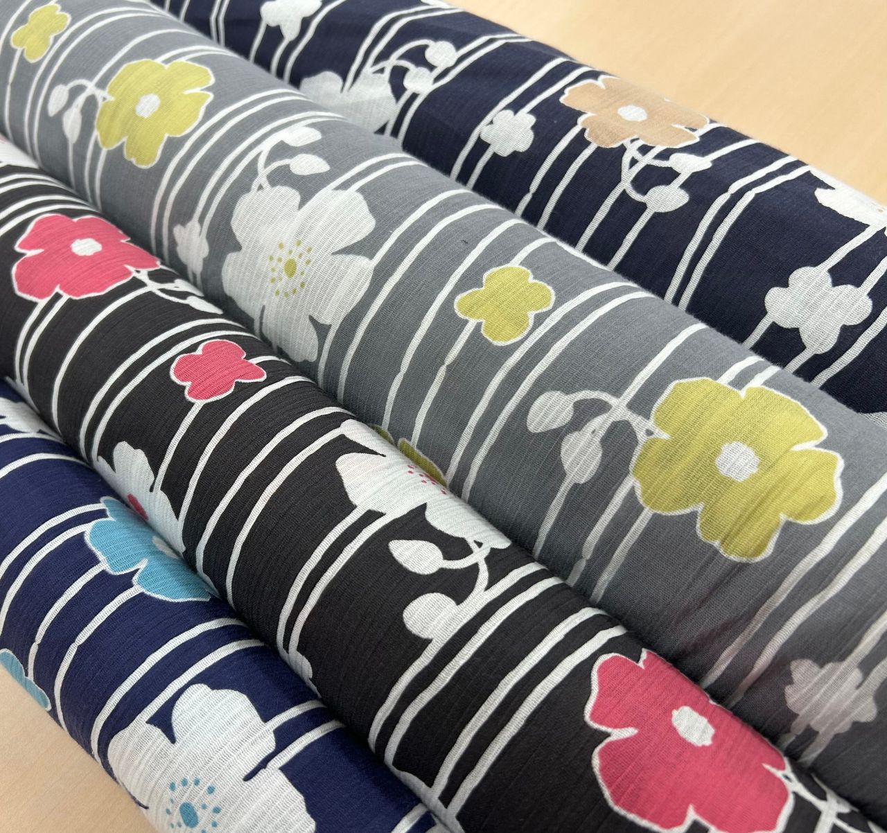 そんなこの季節にオカダヤ町田店2Fでは、新商品の高島ちぢみを使って浴衣の作品を作ってみました✧˖°