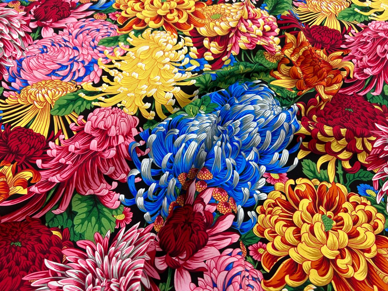 まずは今回帯に使用したこちらの大きなお花と多肉植物?のようなこちらの柄↓